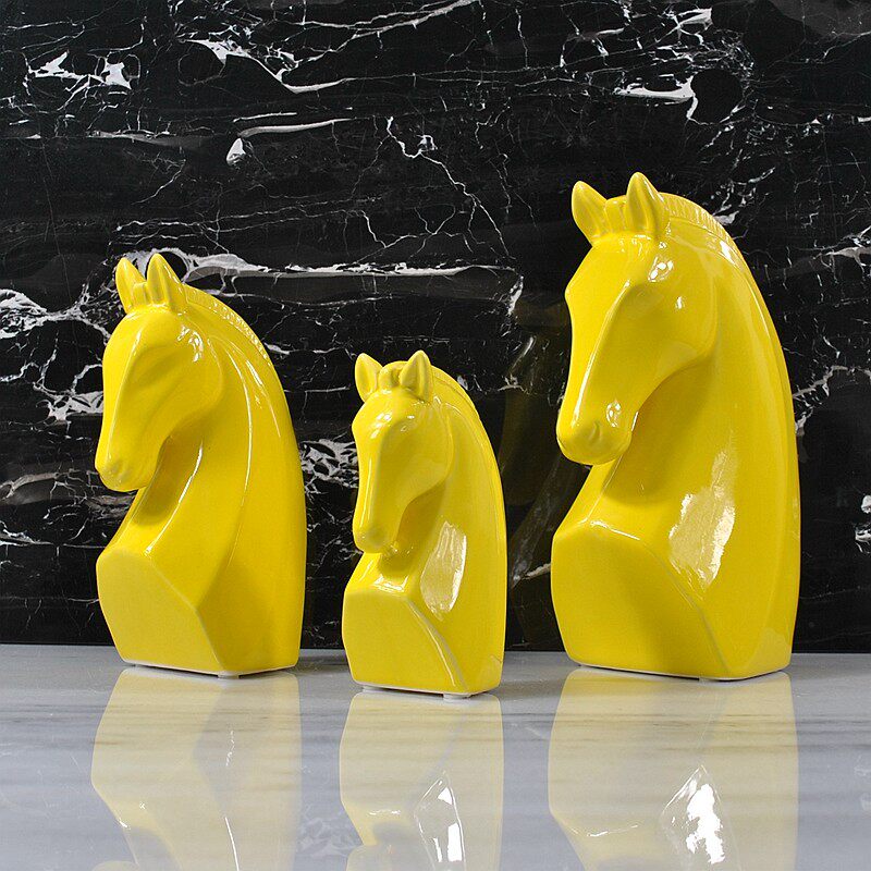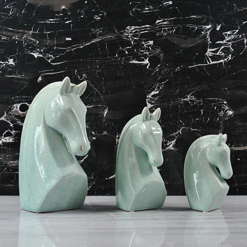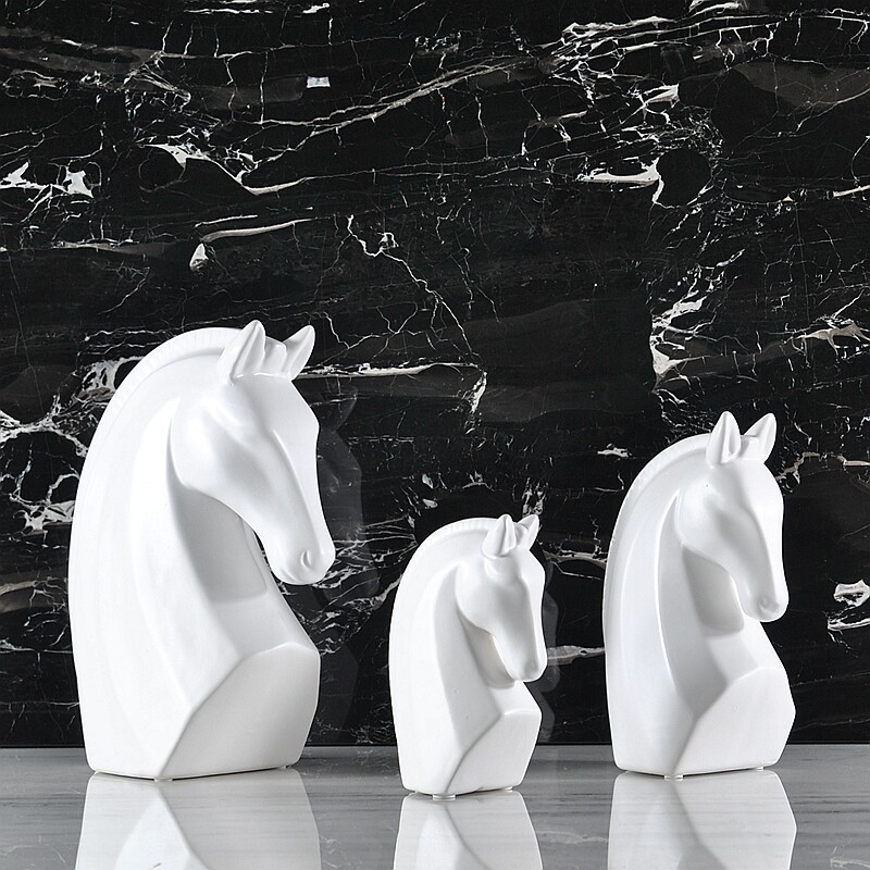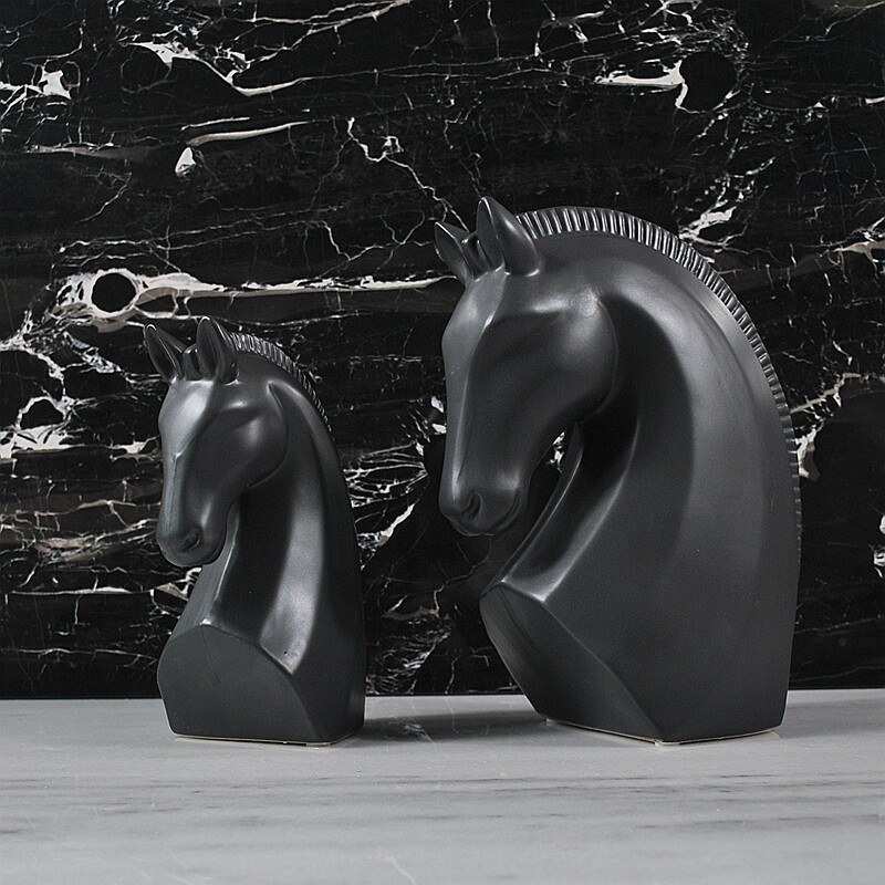 极速极简抽象后现代北欧黑白色陶瓷马头动物摆件家居书房桌面摆台