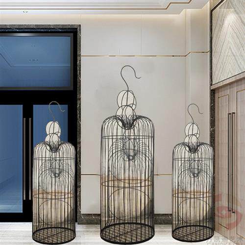 简约铁艺金属鸟笼工艺品样板房酒店会所玄关大厅装饰小品艺术摆件