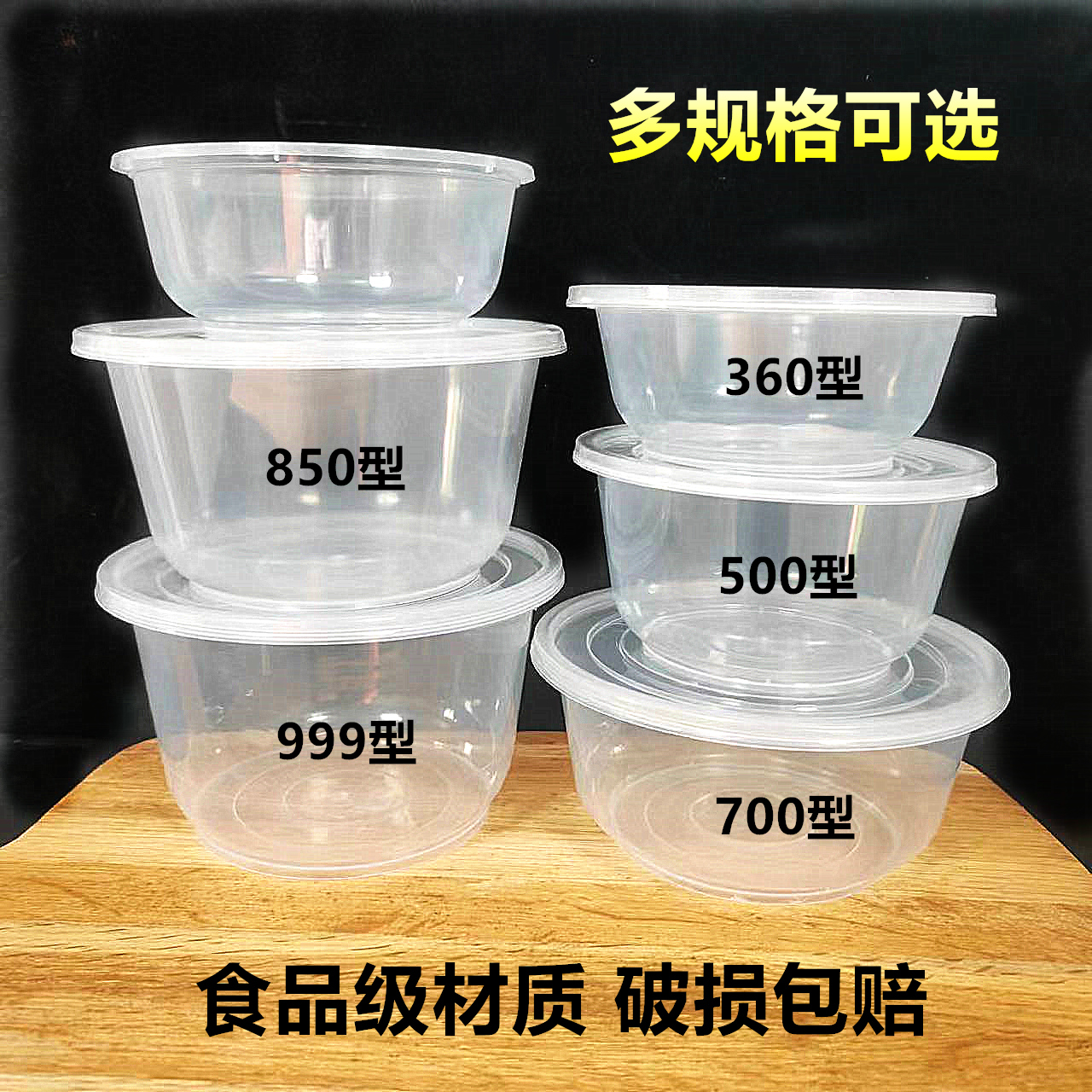 一次用餐碗餐盒打包汤碗透明家用商用带盖圆形加厚注塑碗加硬外卖