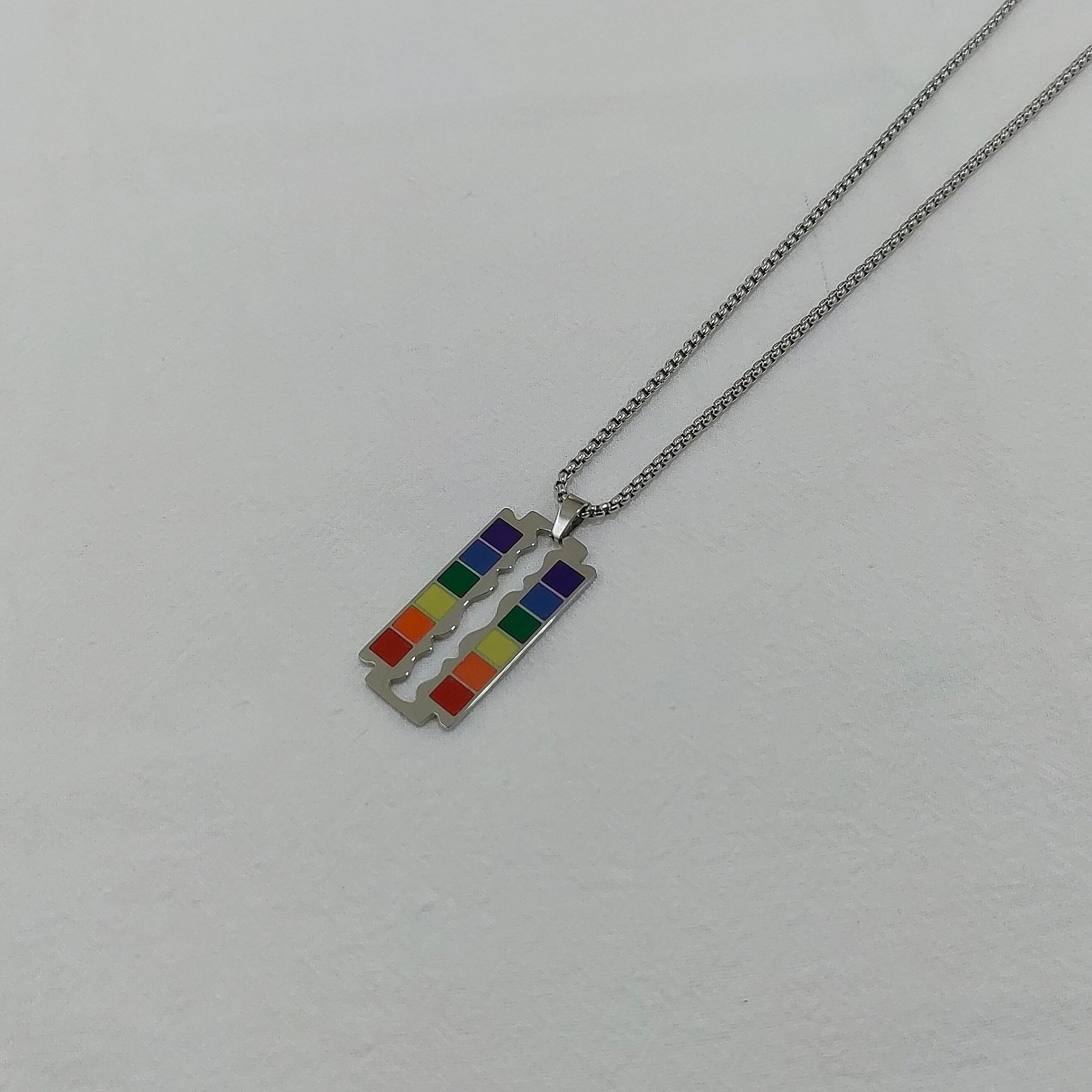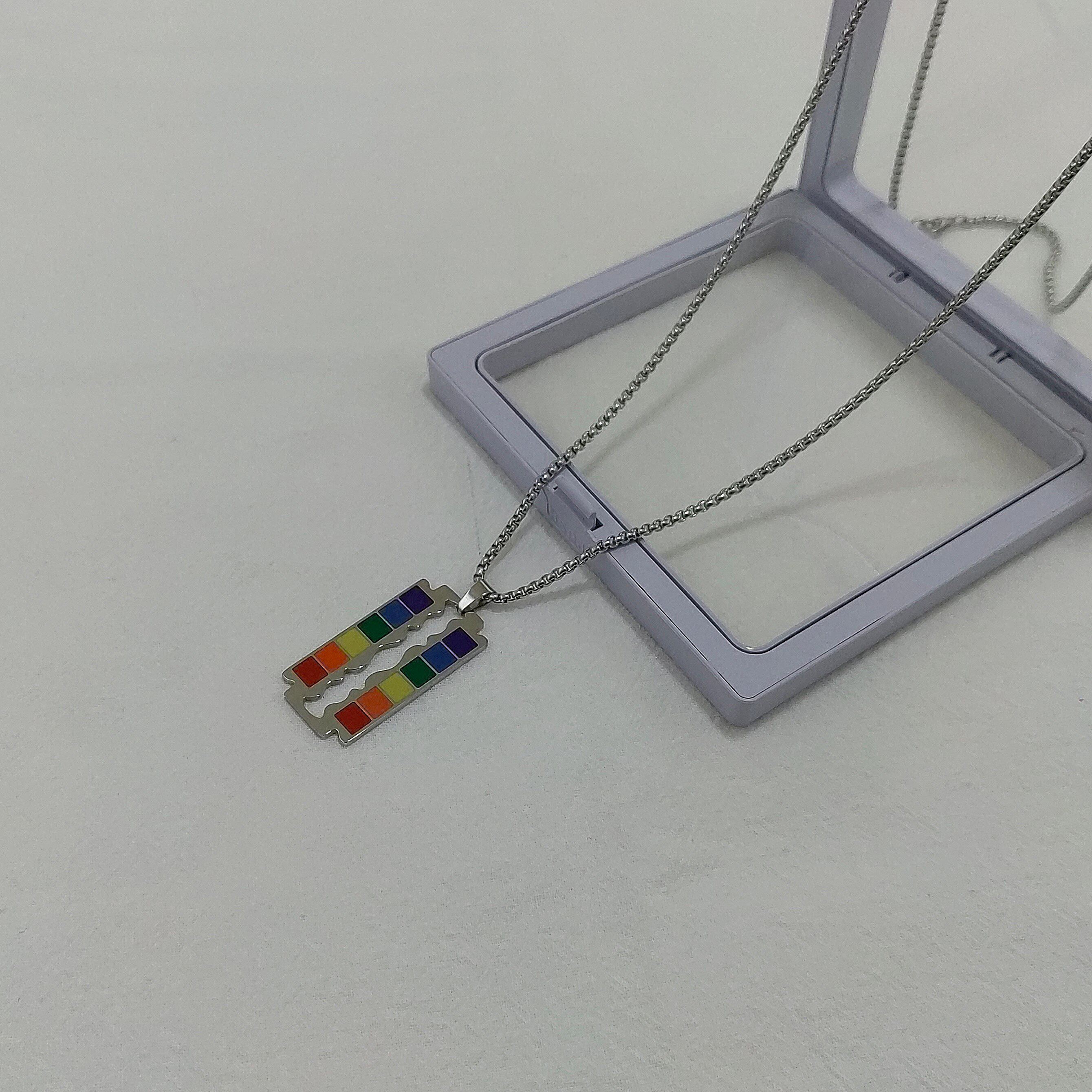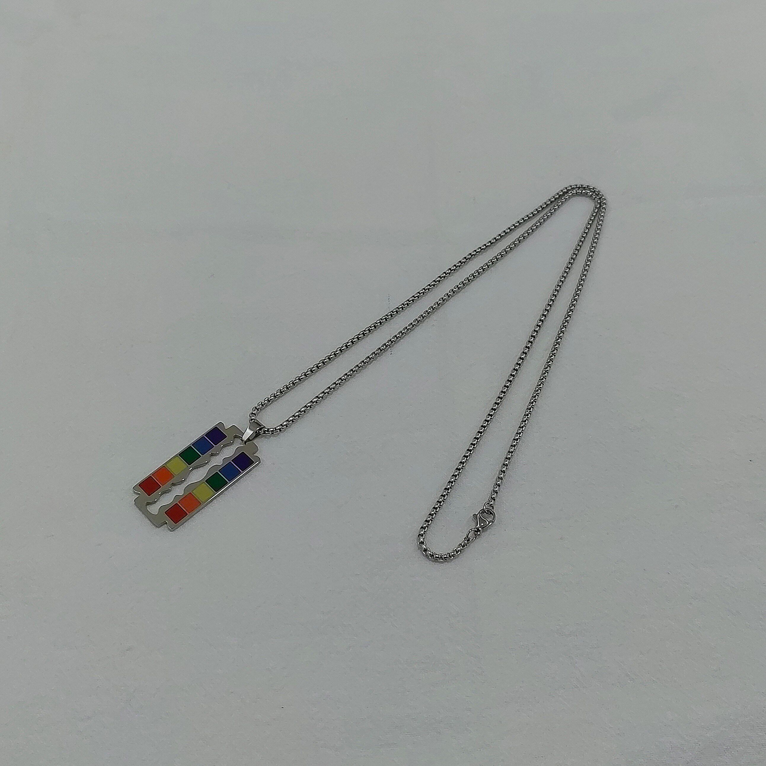 一页出品!创意彩虹刀片项链嘻哈风学生剃须刀片情侣配饰个性饰品