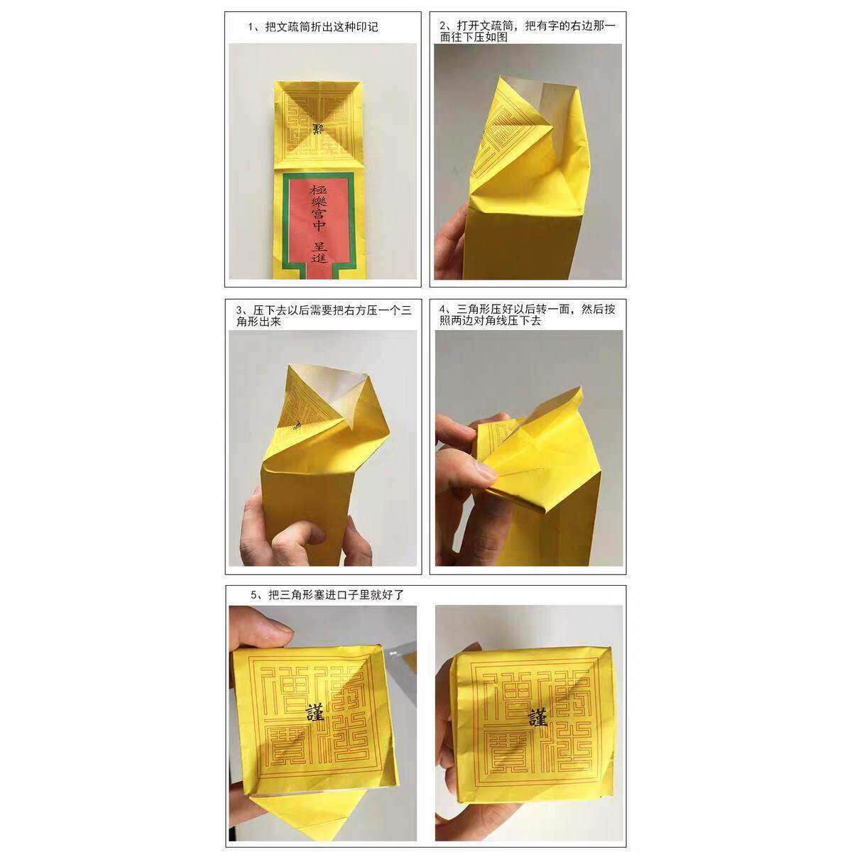 疏文表无字表筒宝表筒黄色红色表筒手工折叠文疏筒有字黄色款