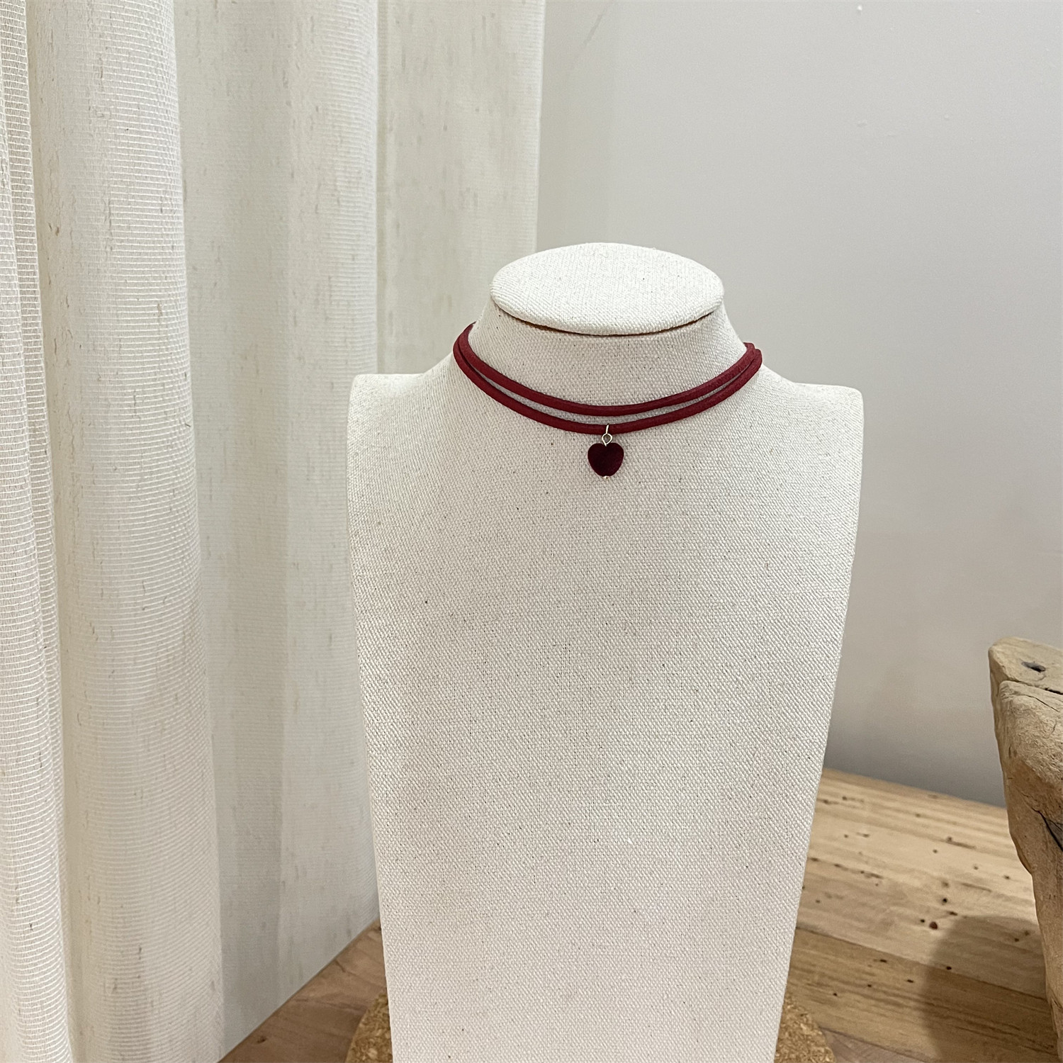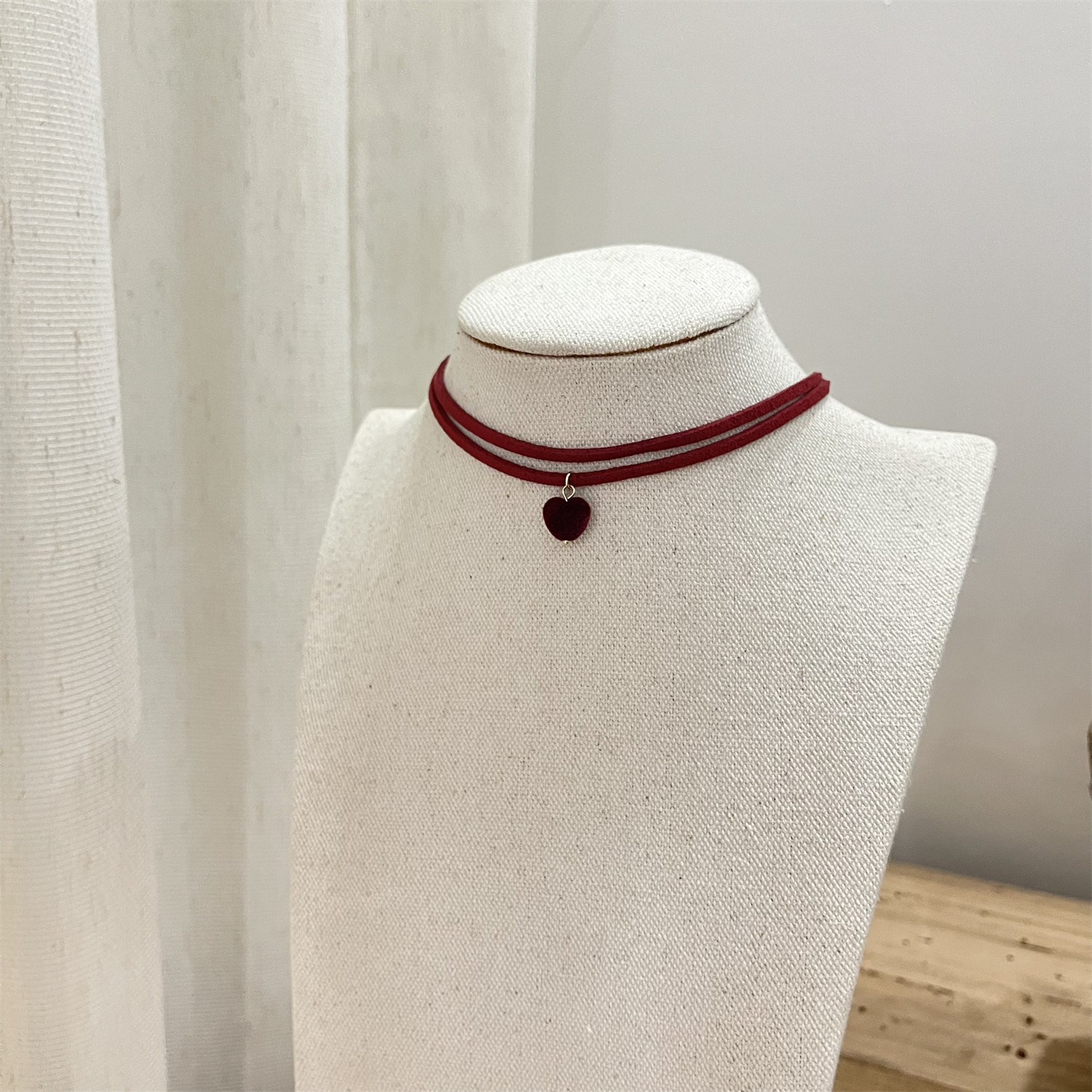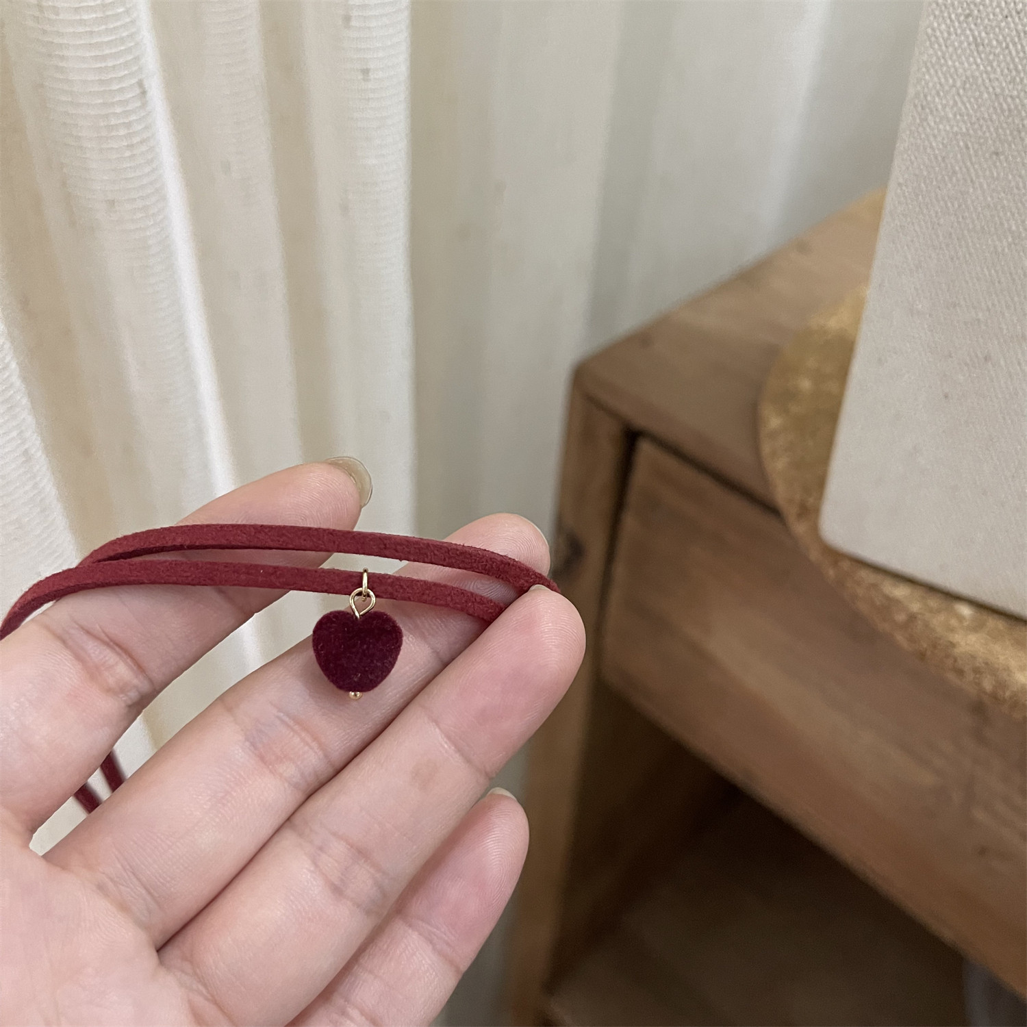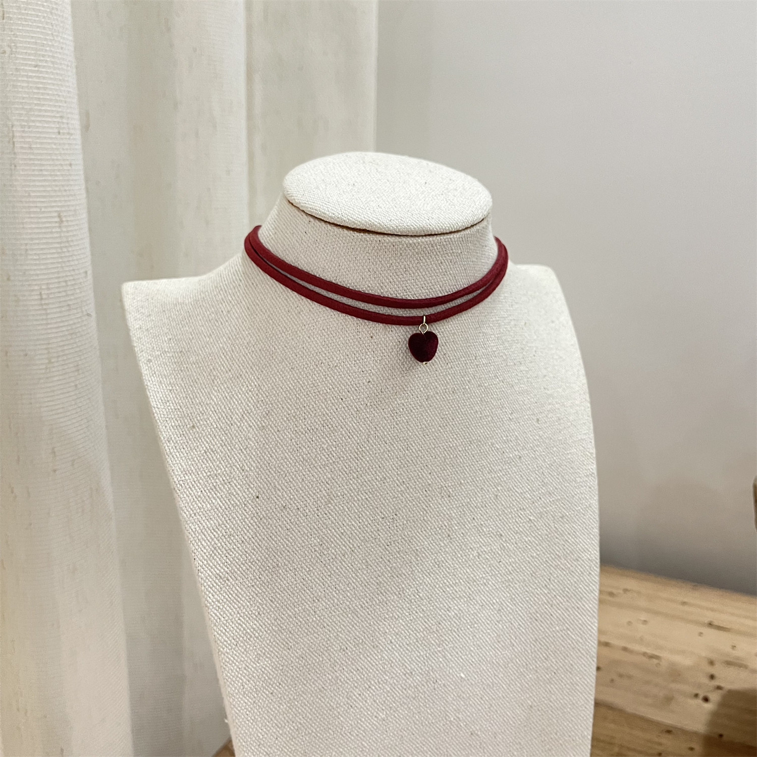 原创秋冬新年红色植绒爱心choker双层简约百搭锁骨链高级感颈链女