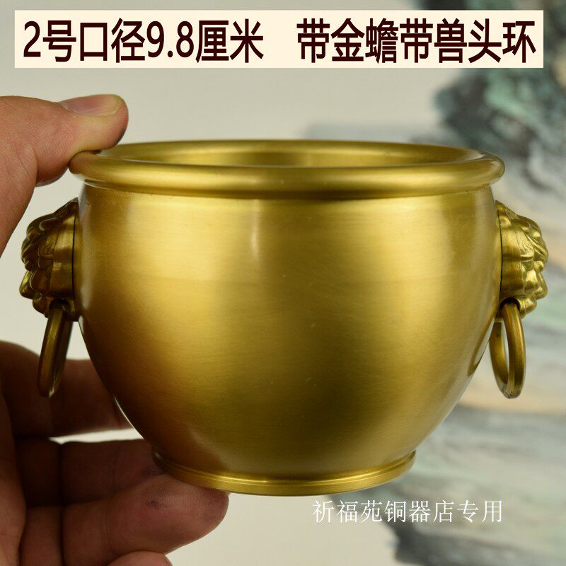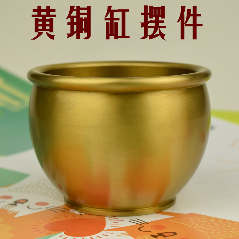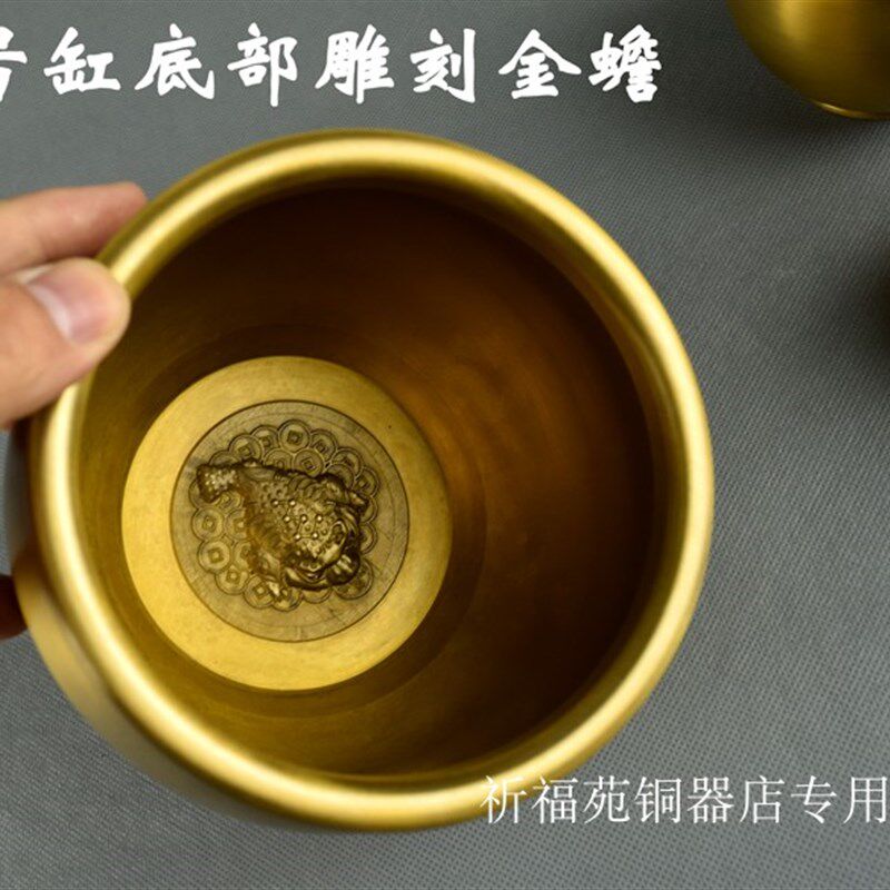 纯铜缸摆件黄铜缸摆件金蟾缸黄色办公室M客厅居家摆件怀旧缸铜