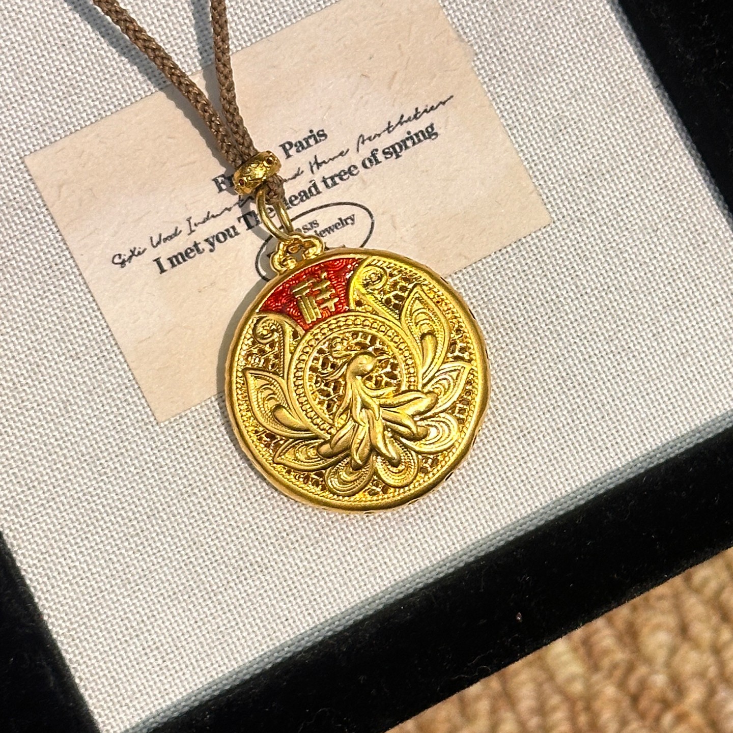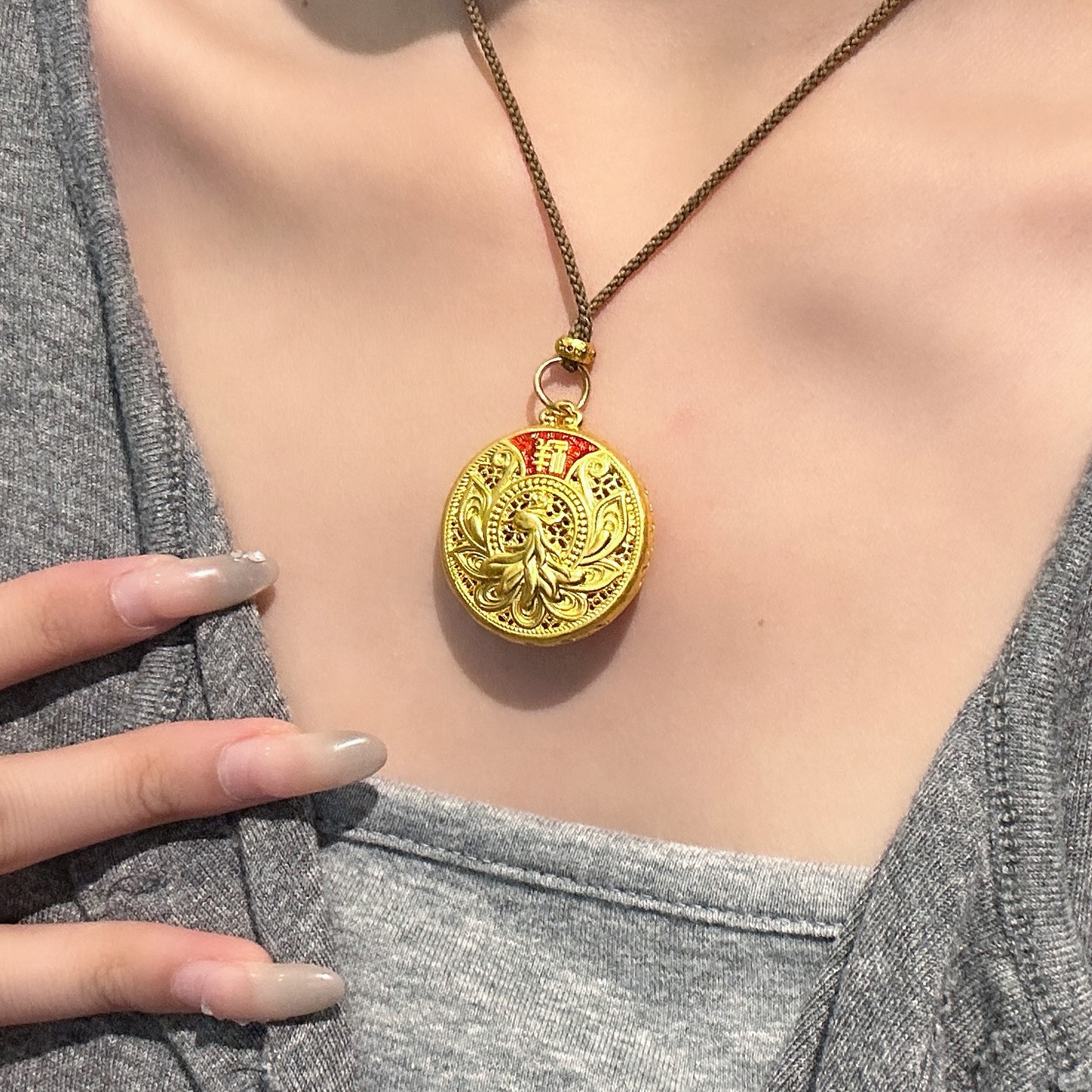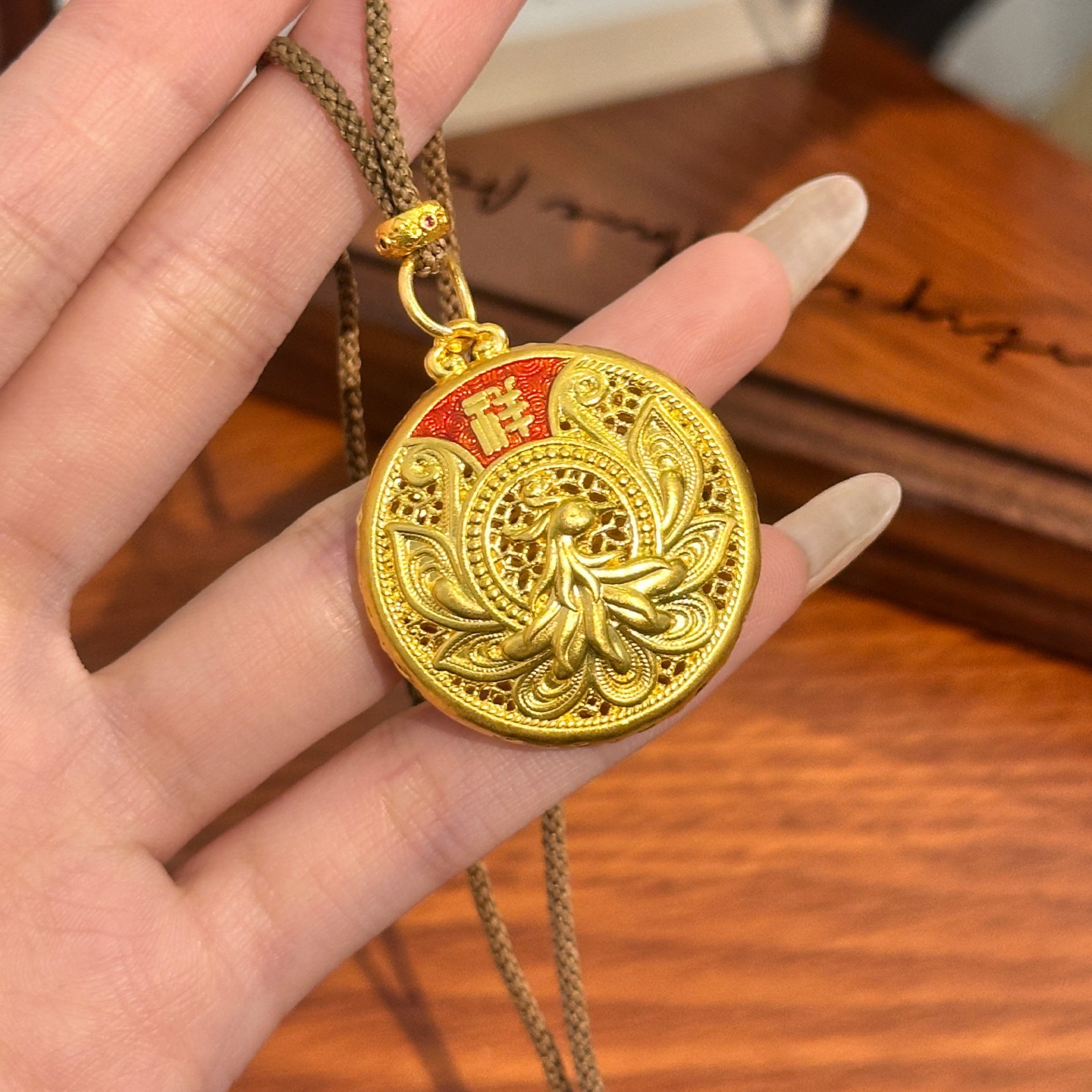 金包银凤凰吉祥吊坠新款2025镂空罗盘挂坠福字招财转运古法女