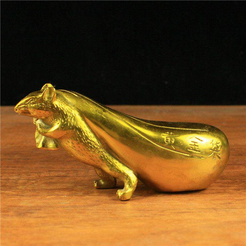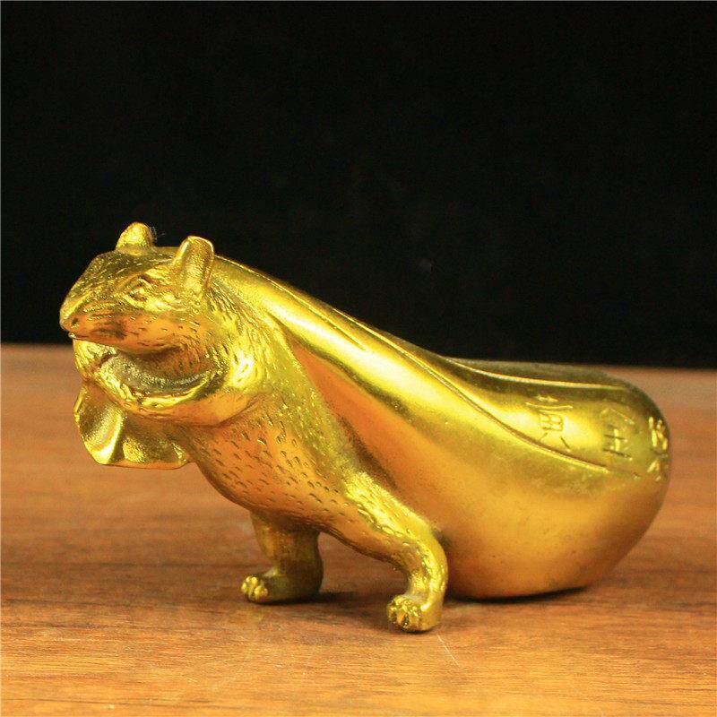 铜黄金袋鼠铜鼠背钱袋纯铜老鼠拉黄金袋家居工艺礼品摆饰桌面办公