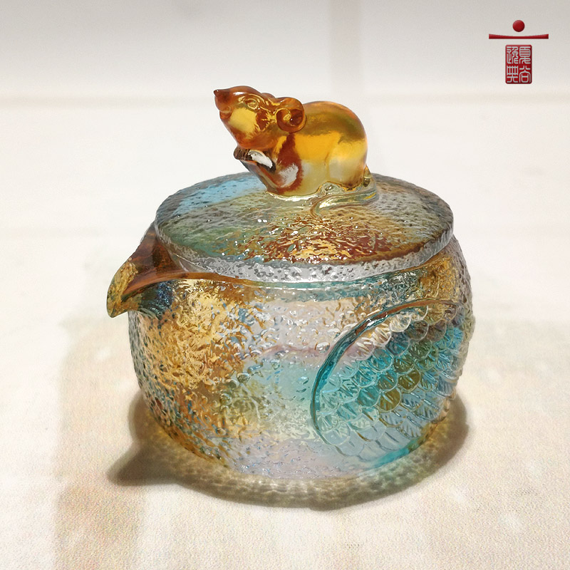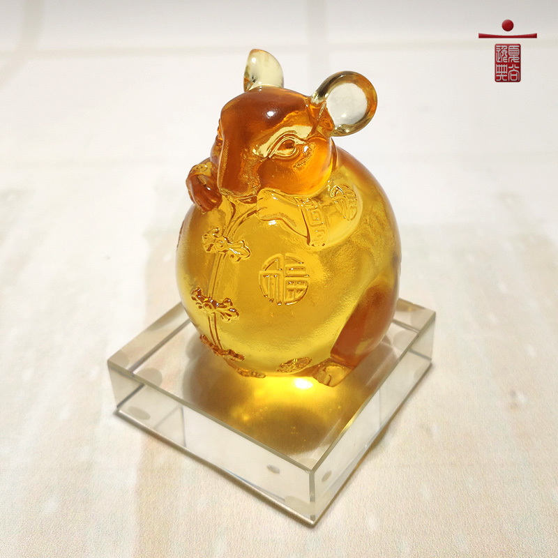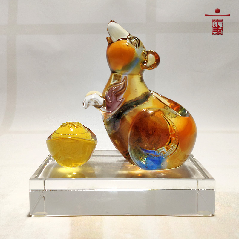 琉璃生肖工艺品刻字纪念品客厅博古架酒柜装饰品玄关可爱老鼠摆件