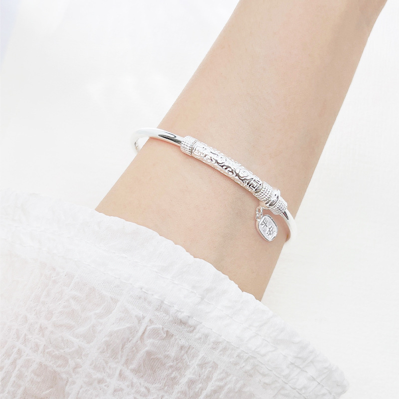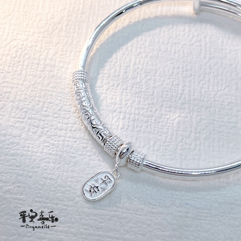 足银999手镯匠心简约网红平安祥云银手镯时尚手链百搭银手饰