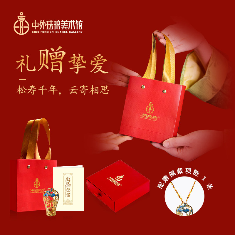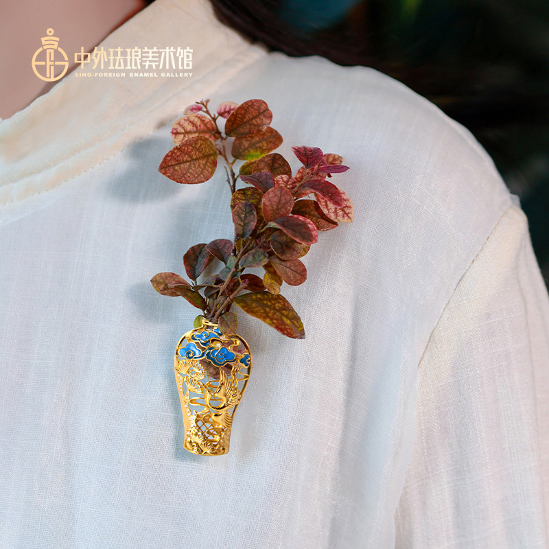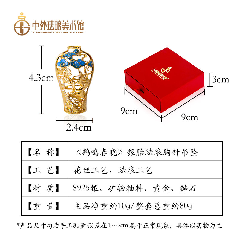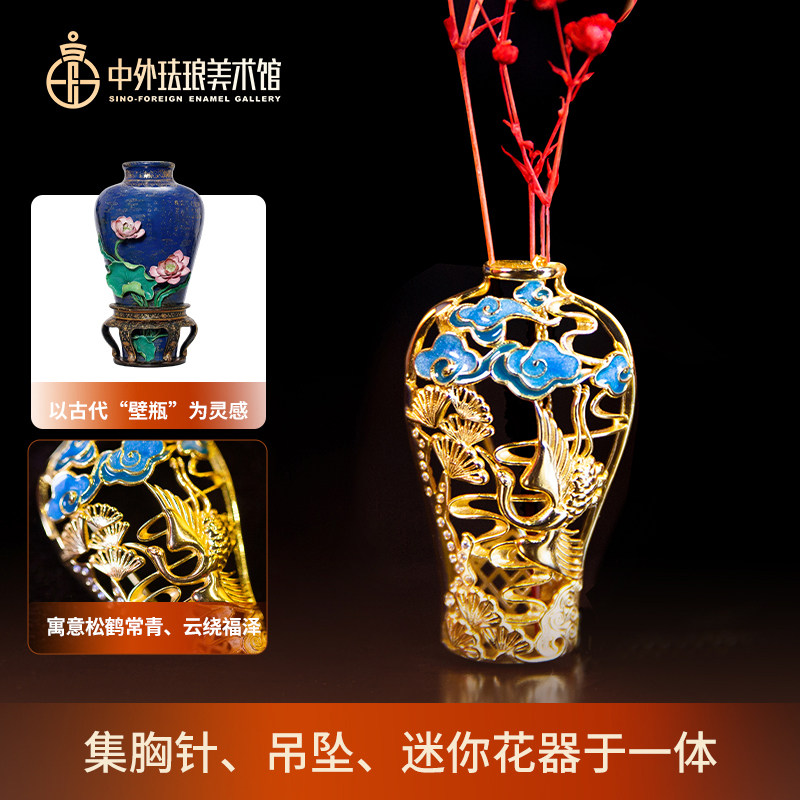 中外珐琅美术馆景泰蓝鹤鸣春晓胸针花丝珐琅镂空香囊吊坠银礼物