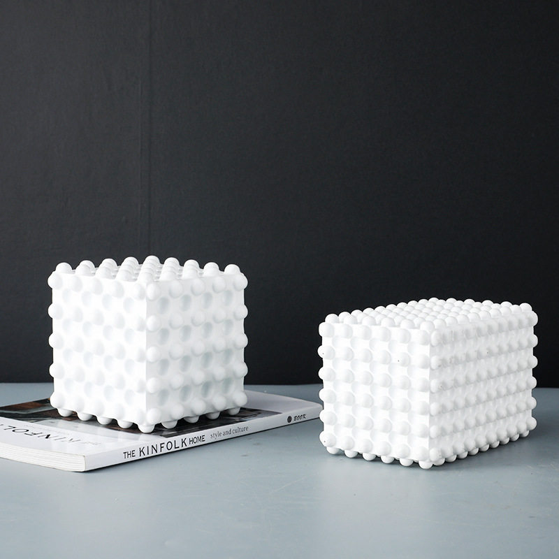北欧现代简约白色方形凹凸摆件样板间售楼处客厅书房创意家居饰品