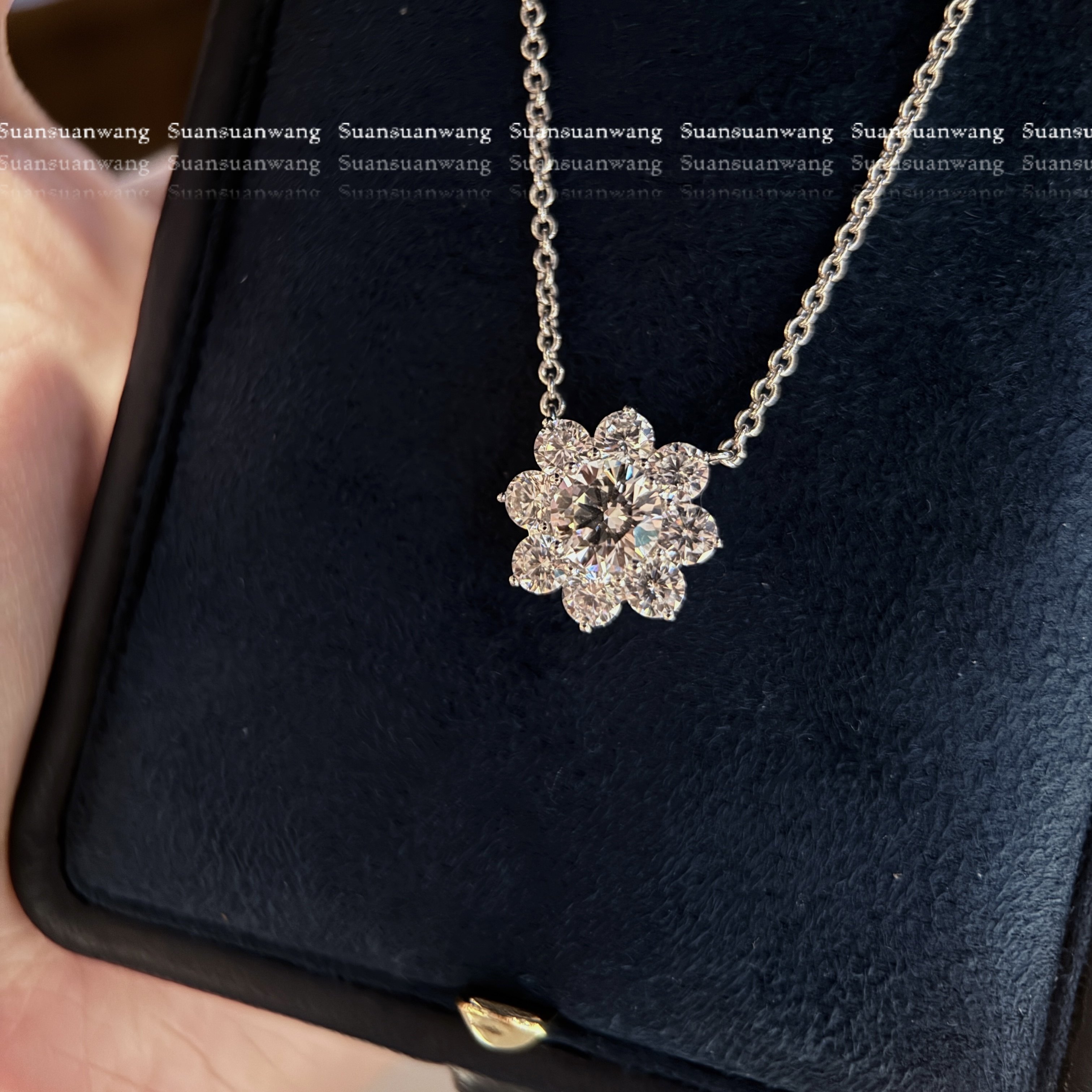 爆闪太阳花!定制D色八心八箭切工仿真钻sunflower锦簇925银项链