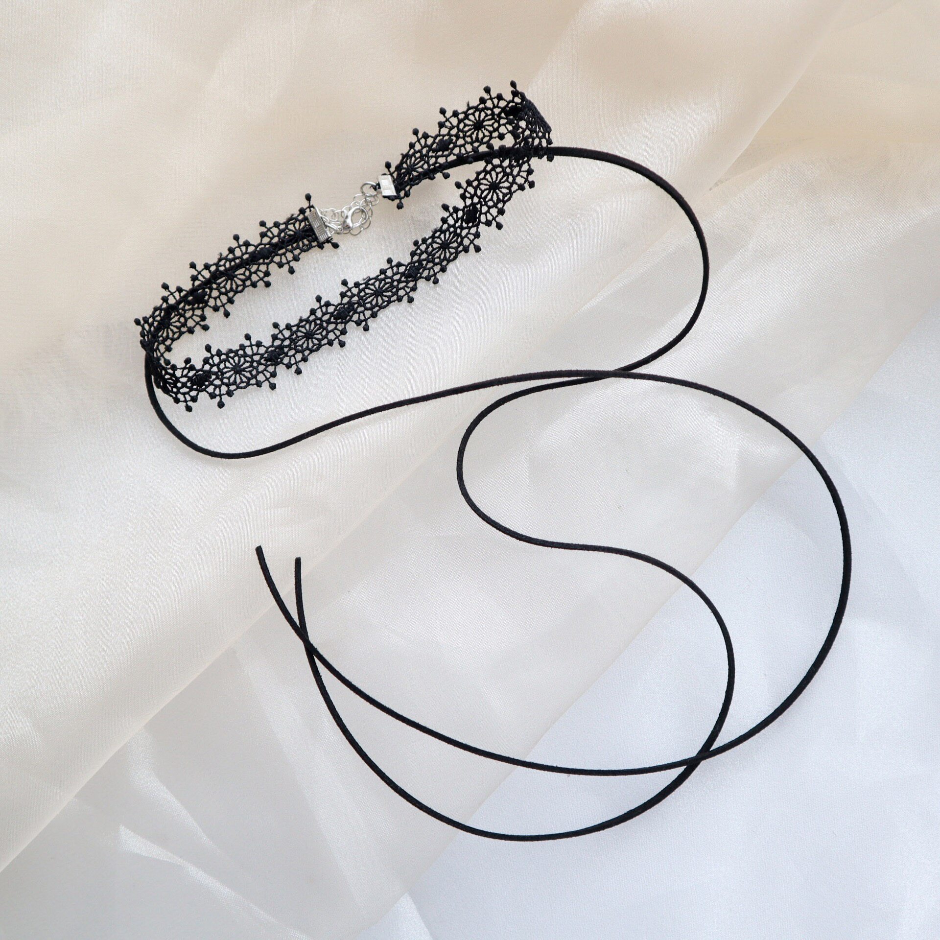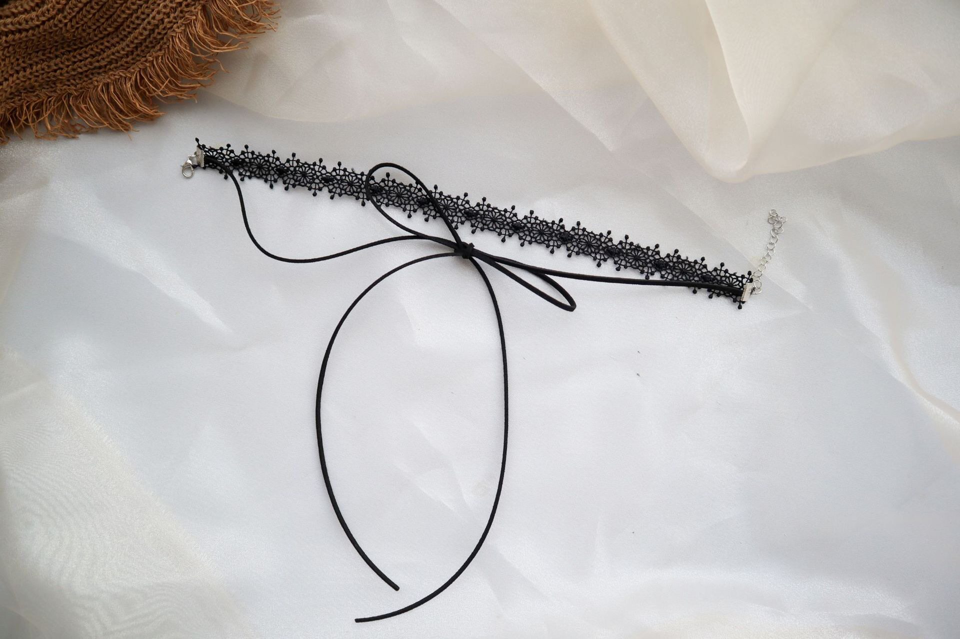 网红甜酷风项链女蝴蝶结仙女黑色蕾丝系带颈带Choker叠带锁骨链