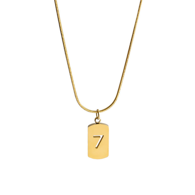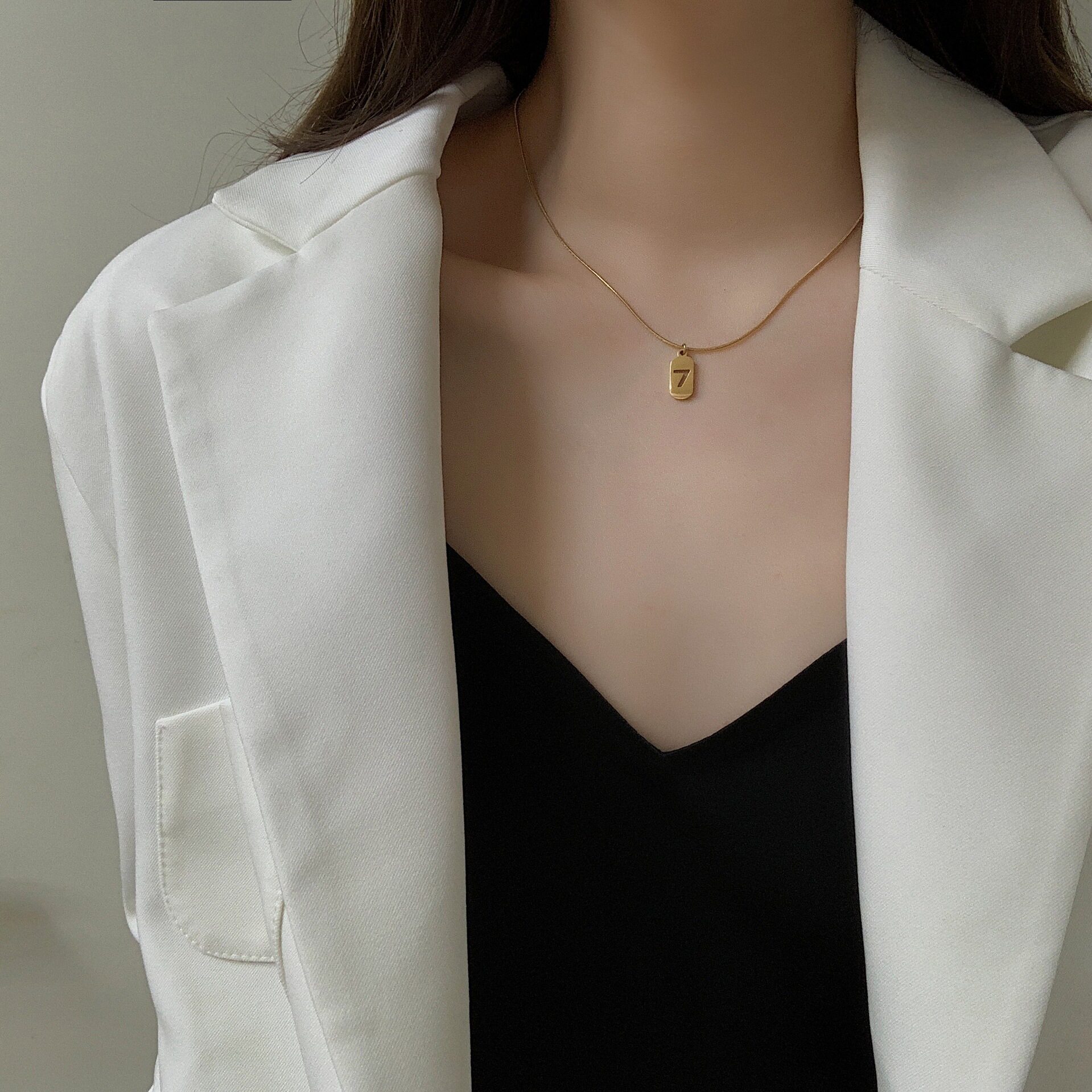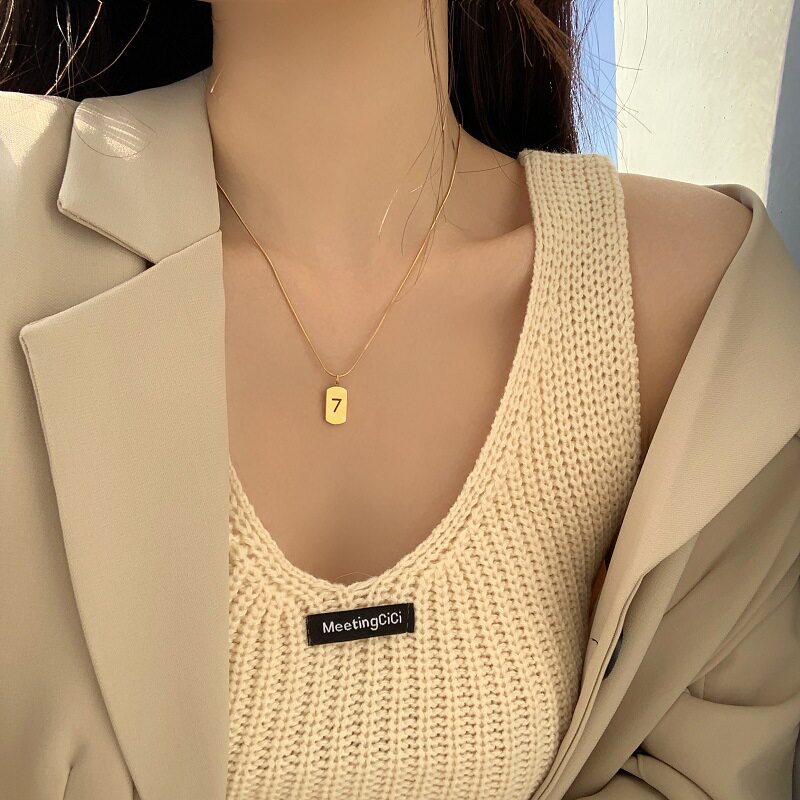 钛钢简约风嘻哈金色方牌7字卫衣项链潮小红书网红同款毛衣链