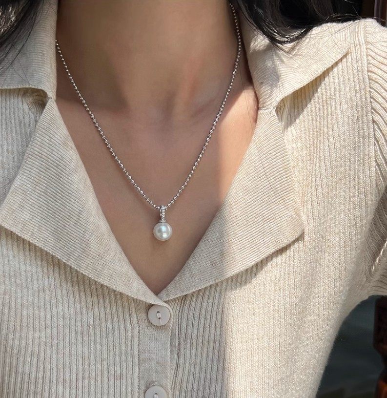 兰溪珍珠 莹润澳白色水晶珍珠万能扣纯银闪珠项链轻奢毛衣链女