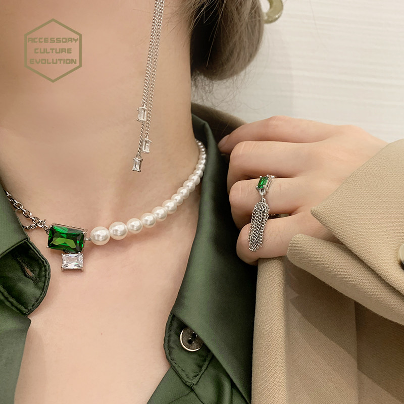 埃斯意 ChooSe绿宝石流苏开口戒小众设计戒指ins潮百搭个性尾戒女