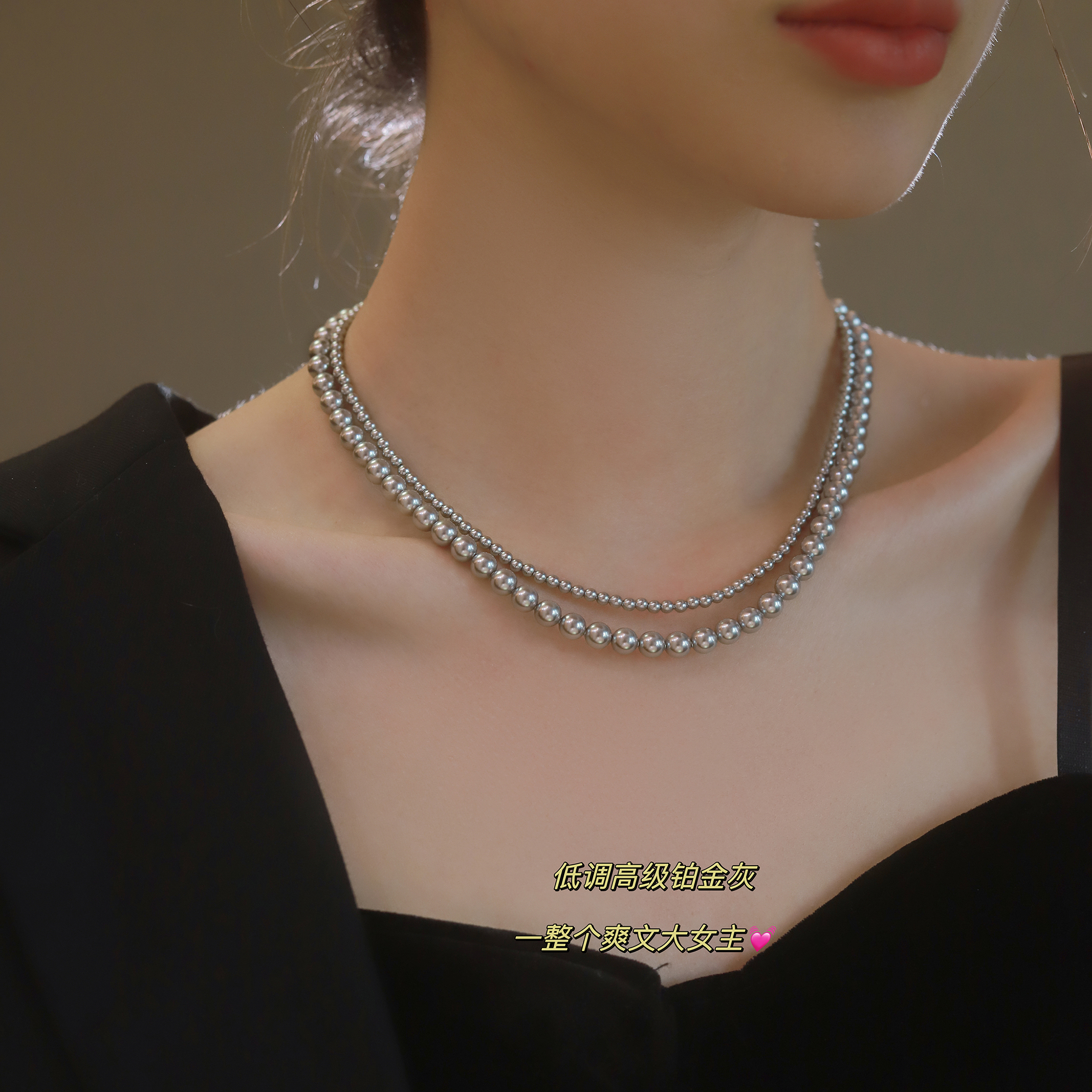 双层珍珠项链女施家小米珠叠戴套链吸石扣通勤百搭时尚颈链送女友
