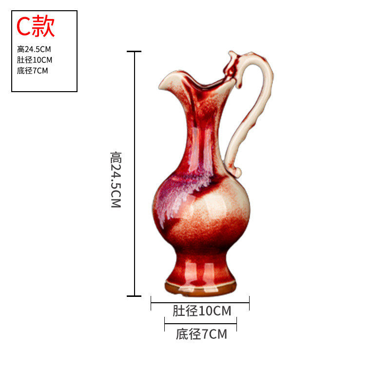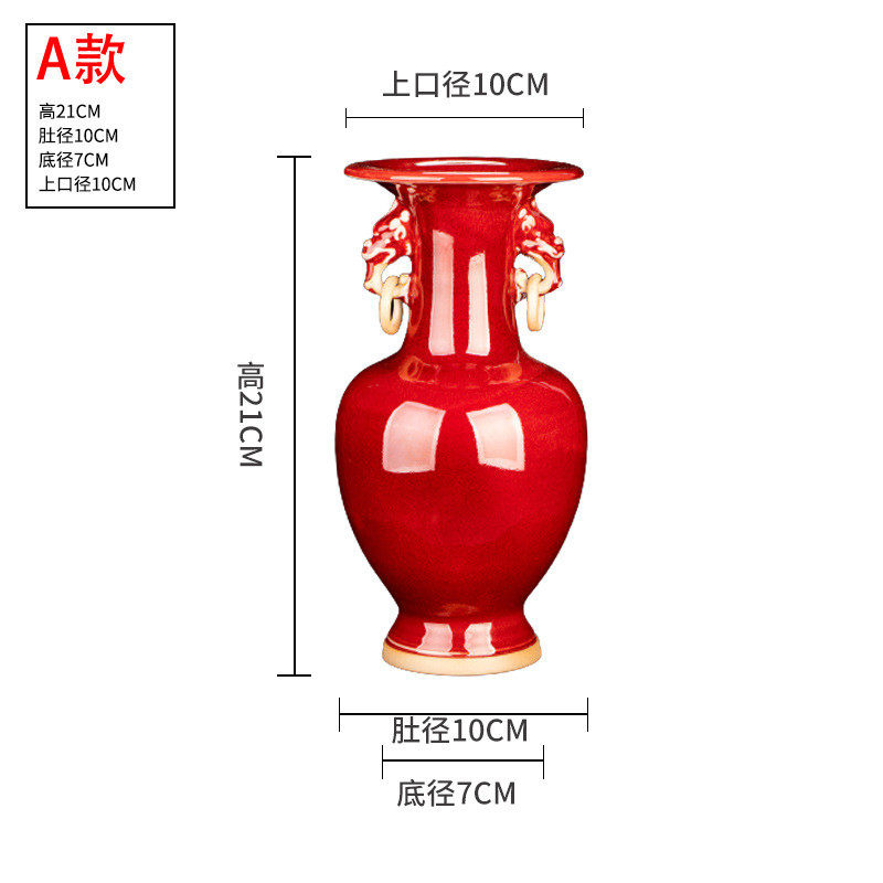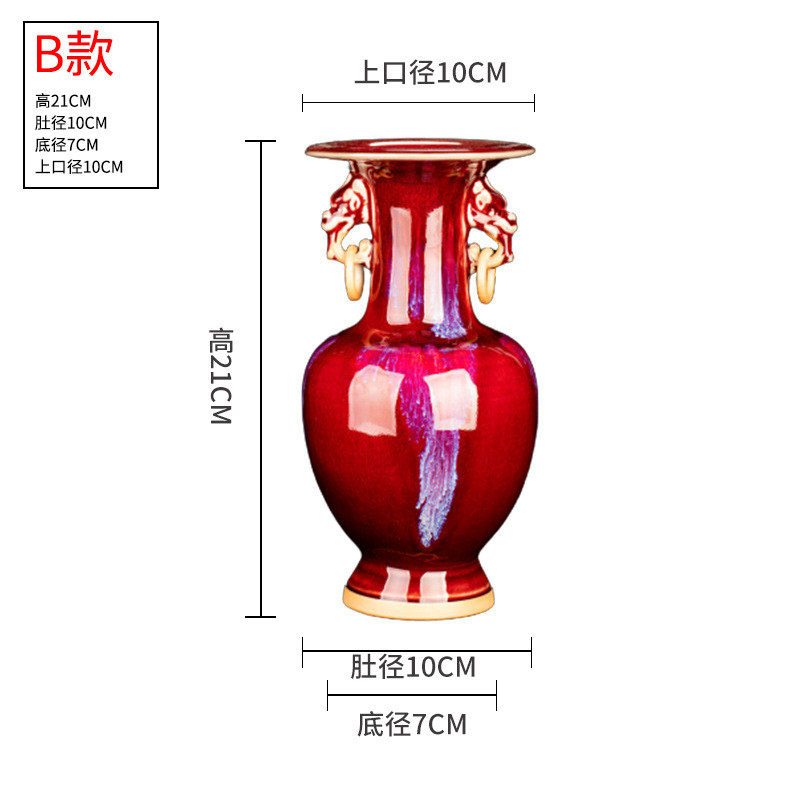 中式复古客厅窑变小号景德镇陶瓷花瓶摆件钧瓷博古架玄关装饰红色