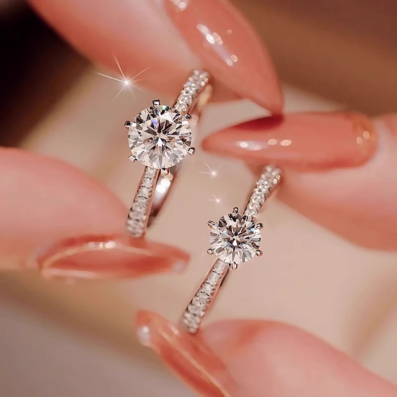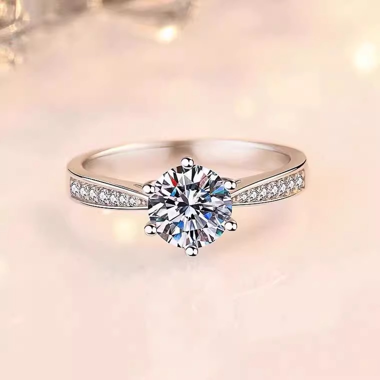 一克拉莫桑石钻戒女纯银六爪求婚仿真钻石戒指2025新款送老婆礼物