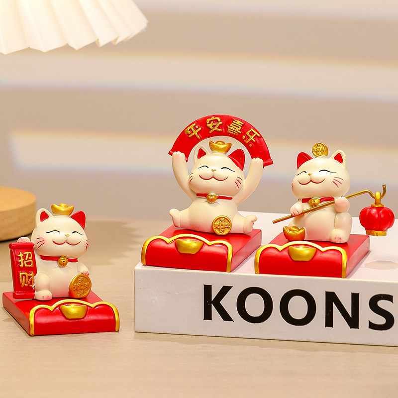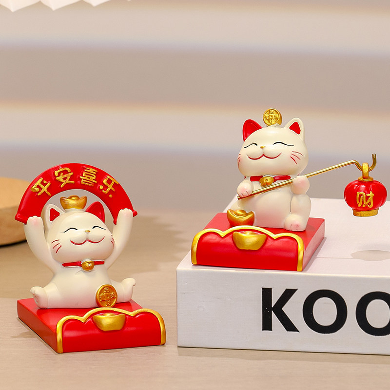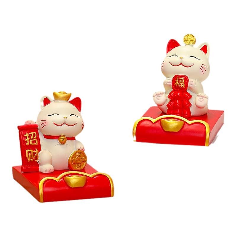 卡通红色招财猫手机支架简约底座懒人好物创意可爱装饰小摆件
