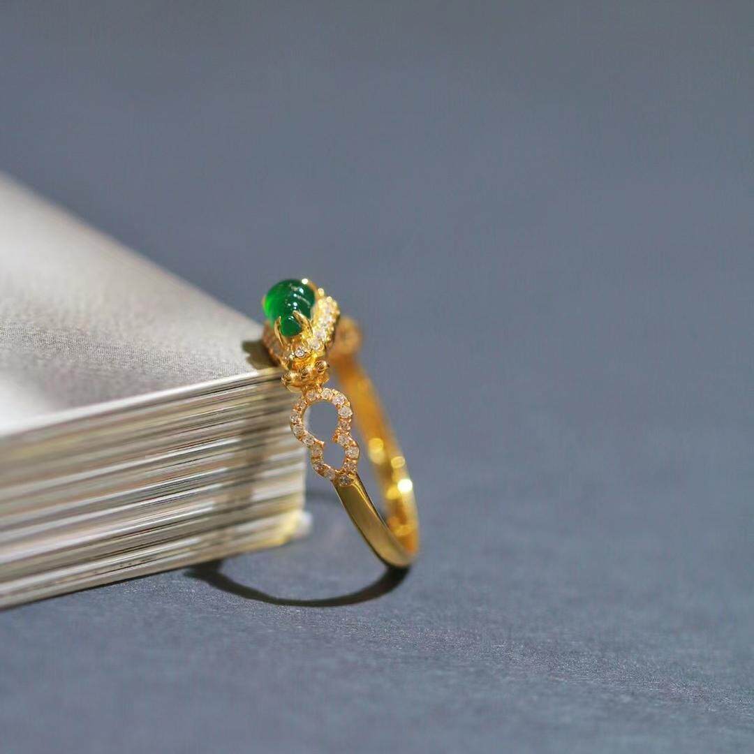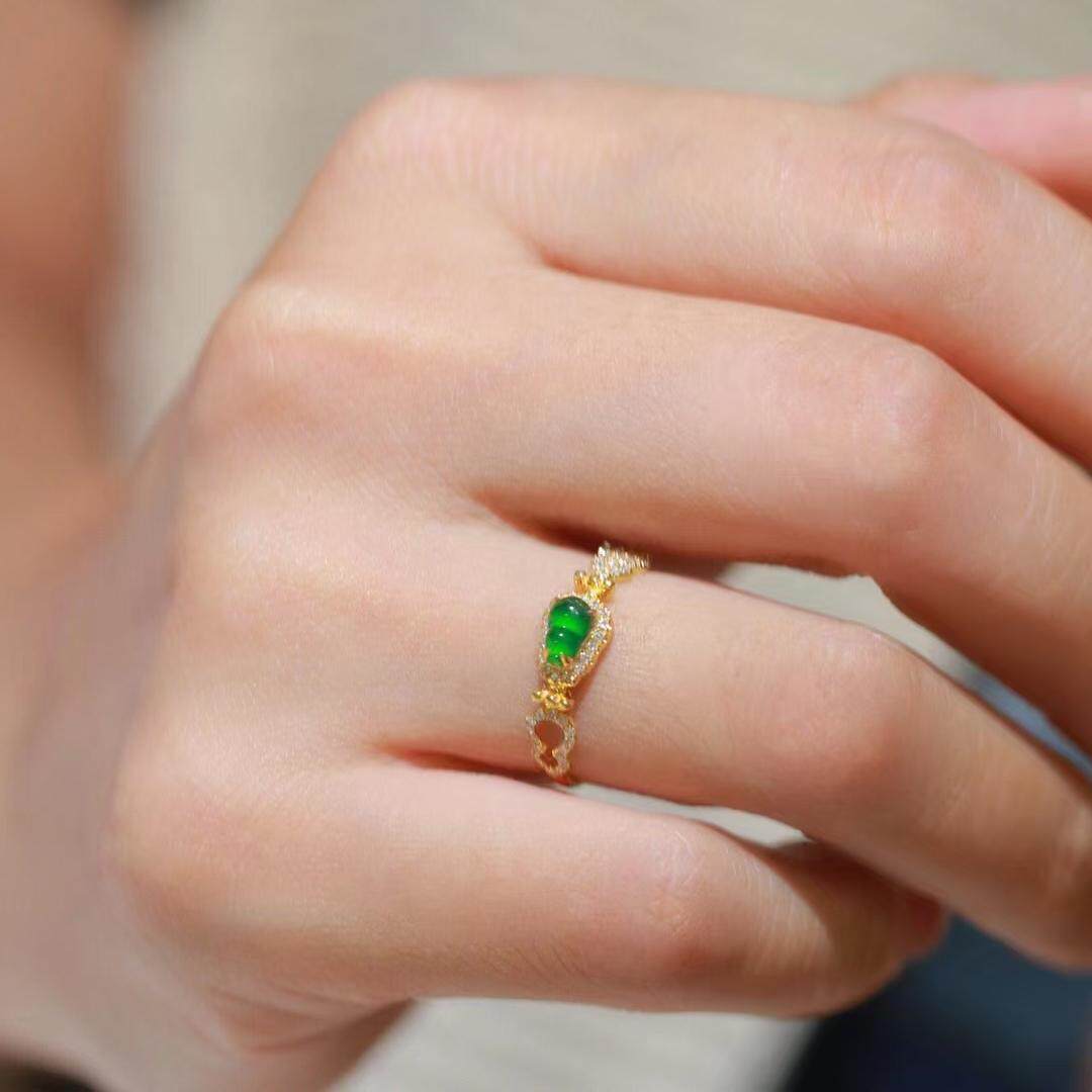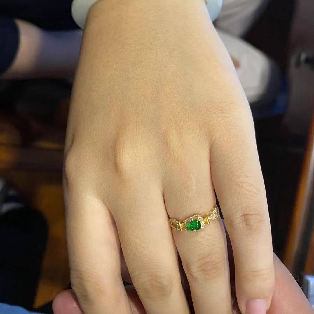 新款时尚绿色锆石葫芦戒指百搭款复古个性高级戒指饰品