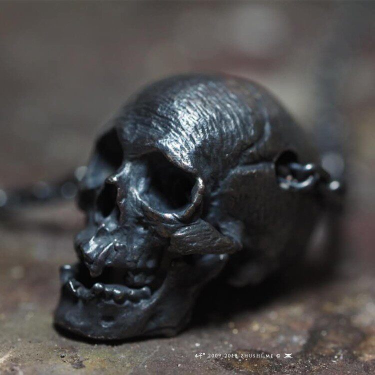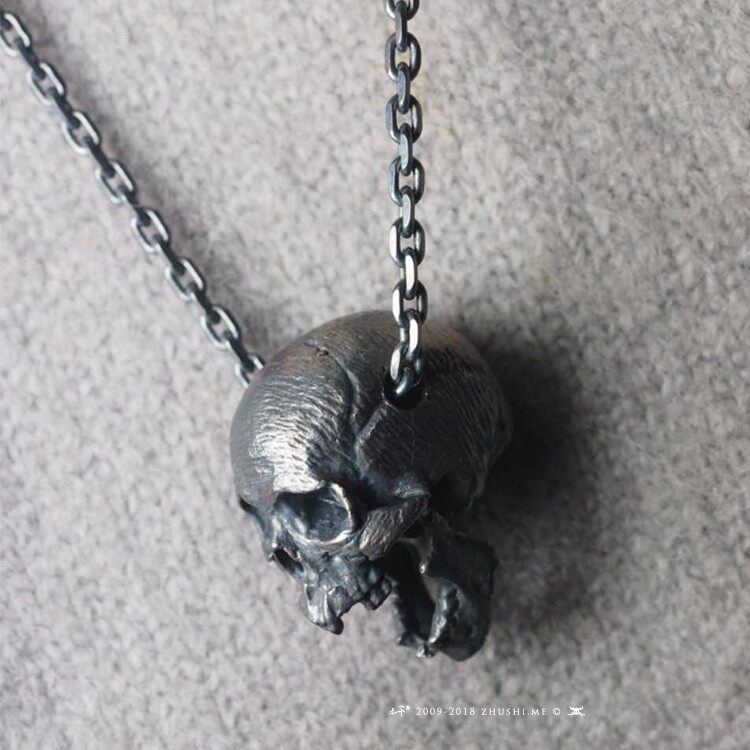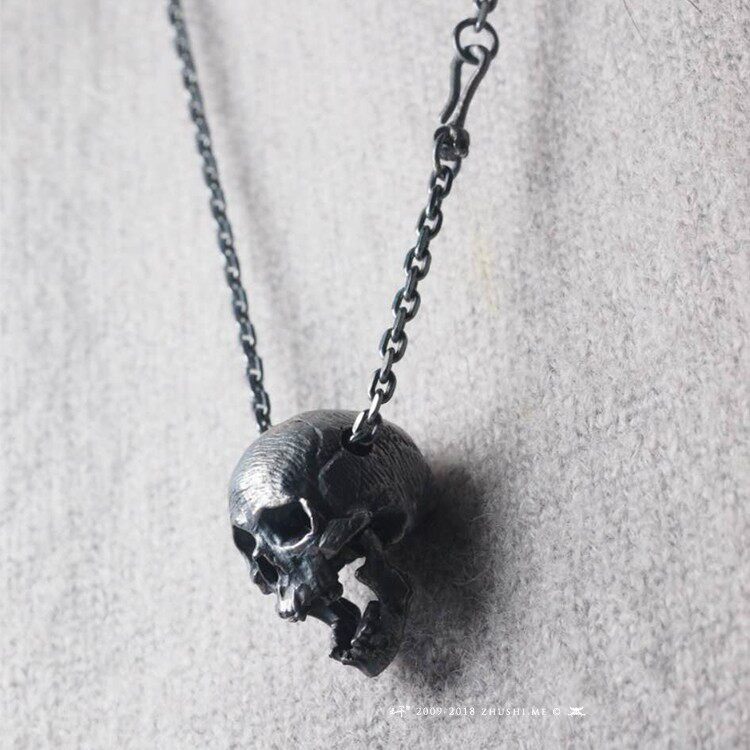 主师原创S925纯银个性写实骷髅头男女吊坠项坠首饰银饰品