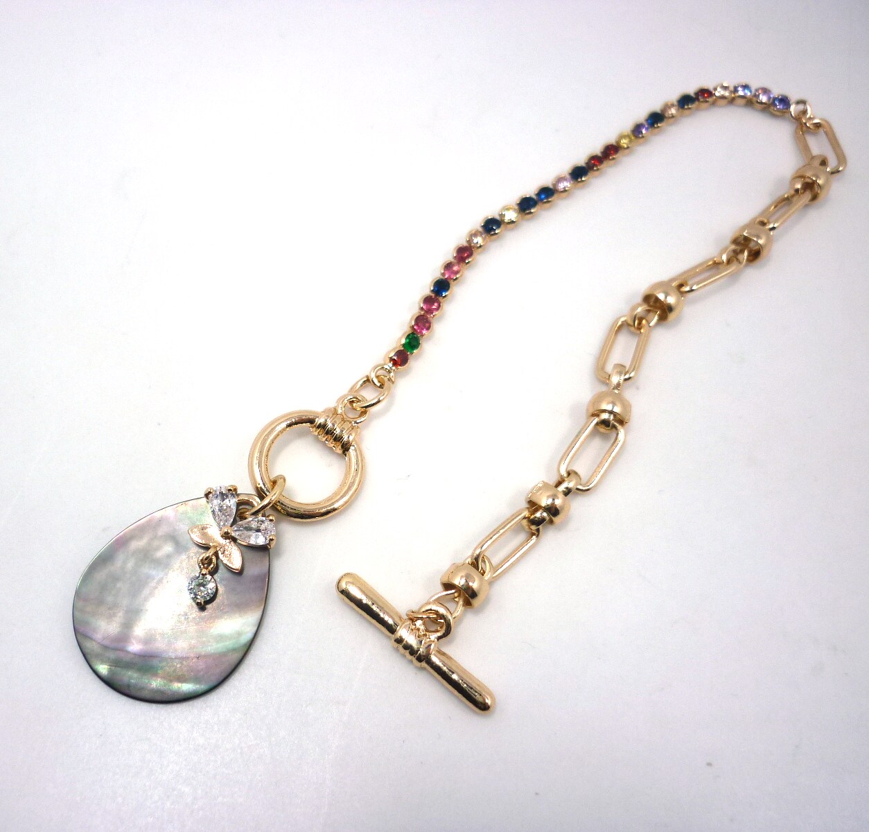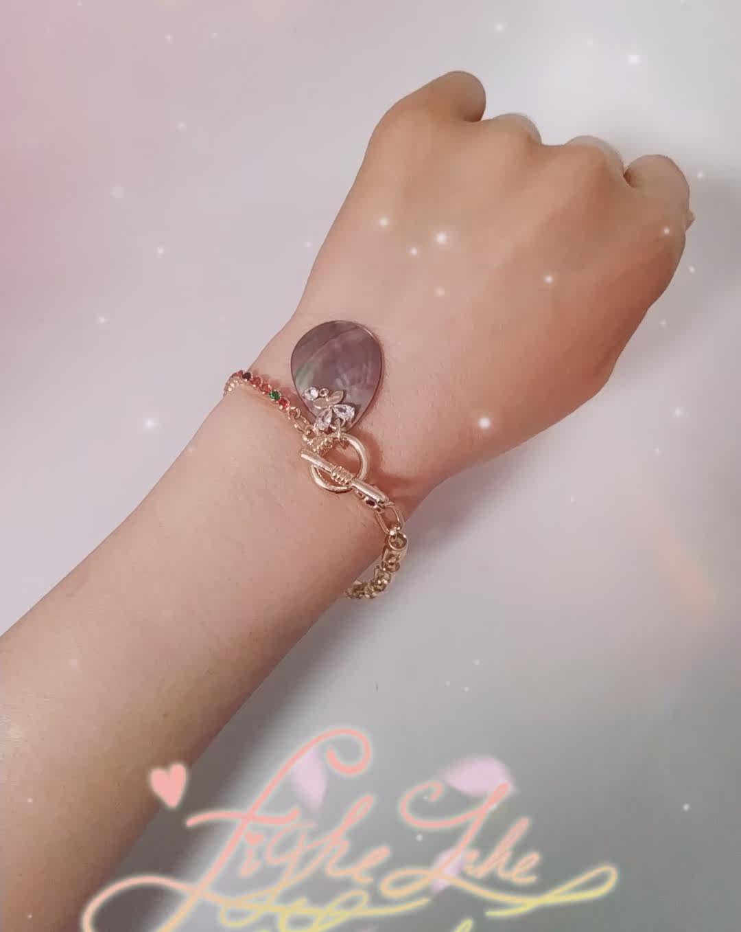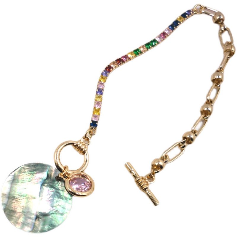 欧美外贸手链爆款手工彩钻链条镀金天然鲍鱼贝蝴蝶粉色大锆石原单