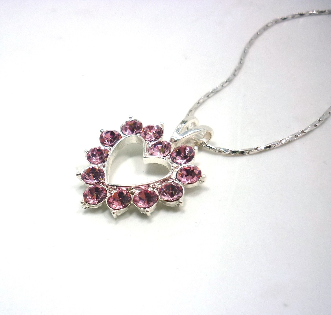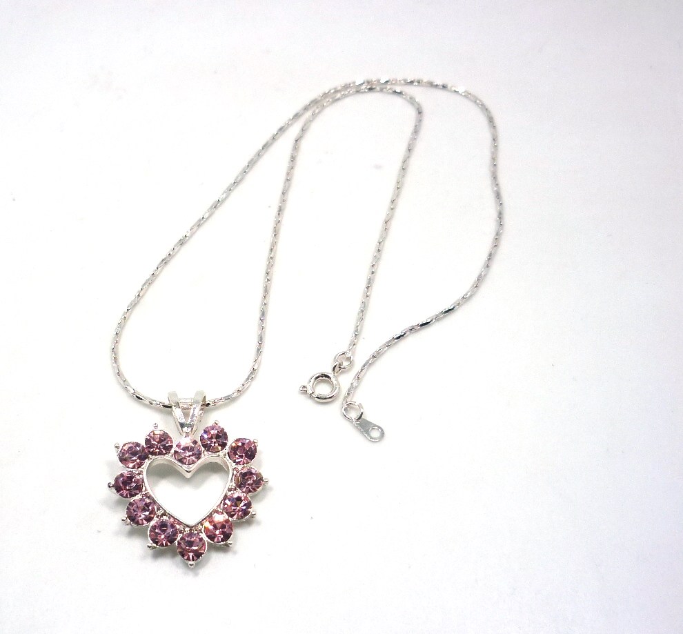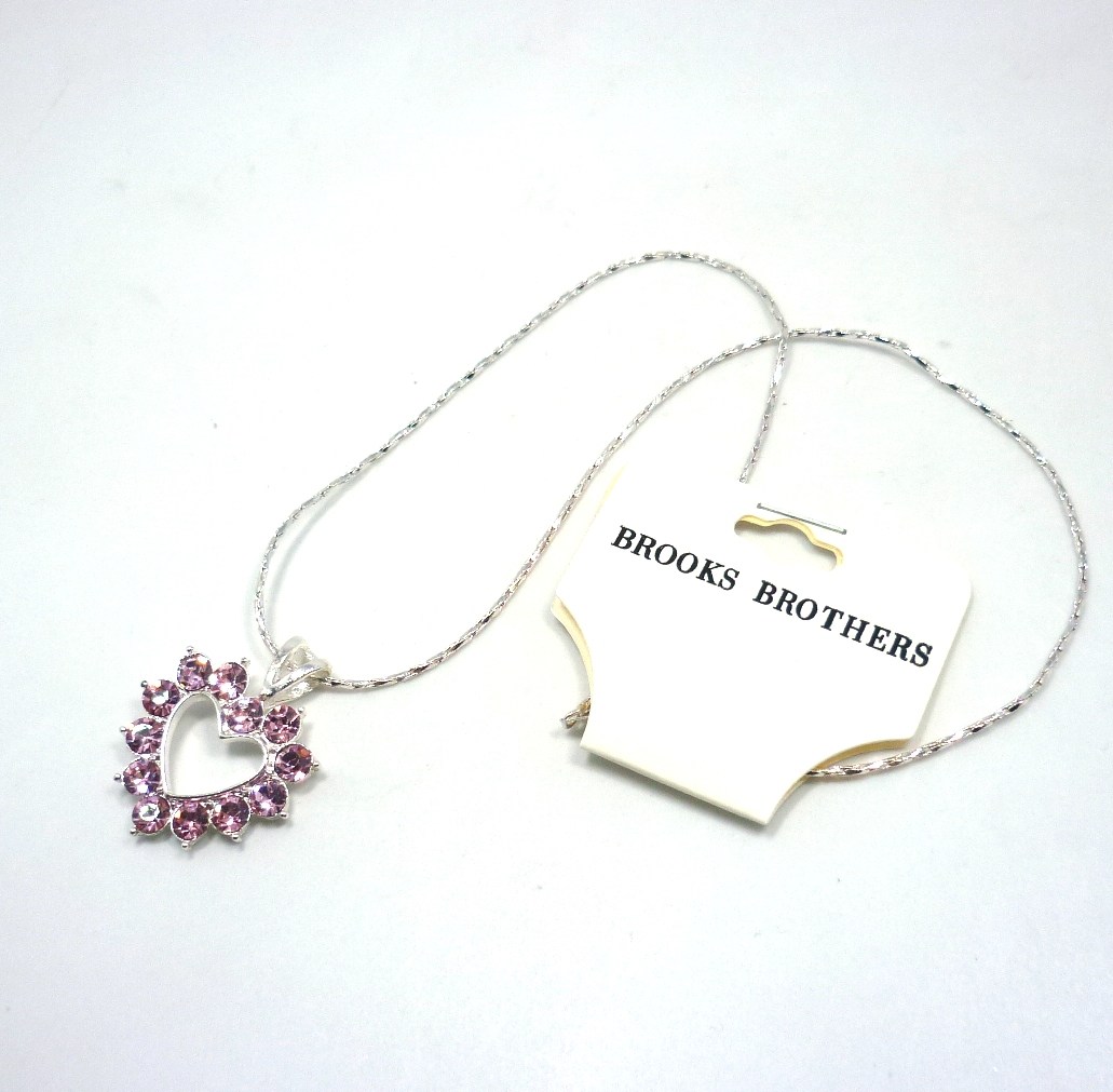 欧美外贸项链粉色水钻心形镀银BROOKS BROTHERS带卡 总长44厘米