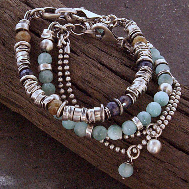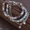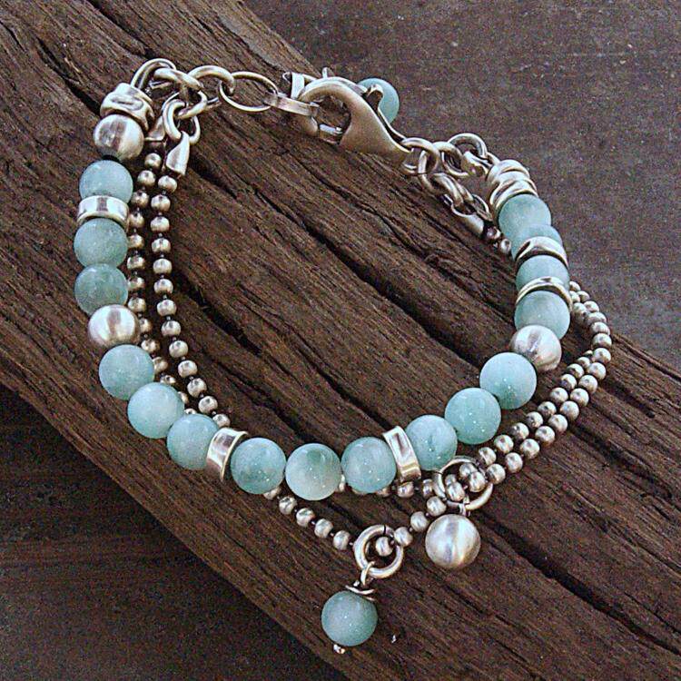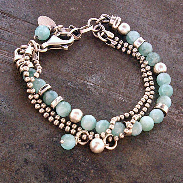 波兰代购Green◇手作复古柔和绿色玉石宝石链条银珠氧化纯银手链