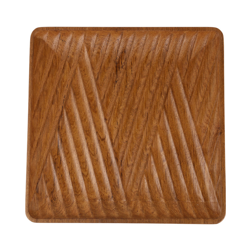 皇吉手工缅甸柚木托盘实木木质创意正方形果盘客厅摆盘收纳家用
