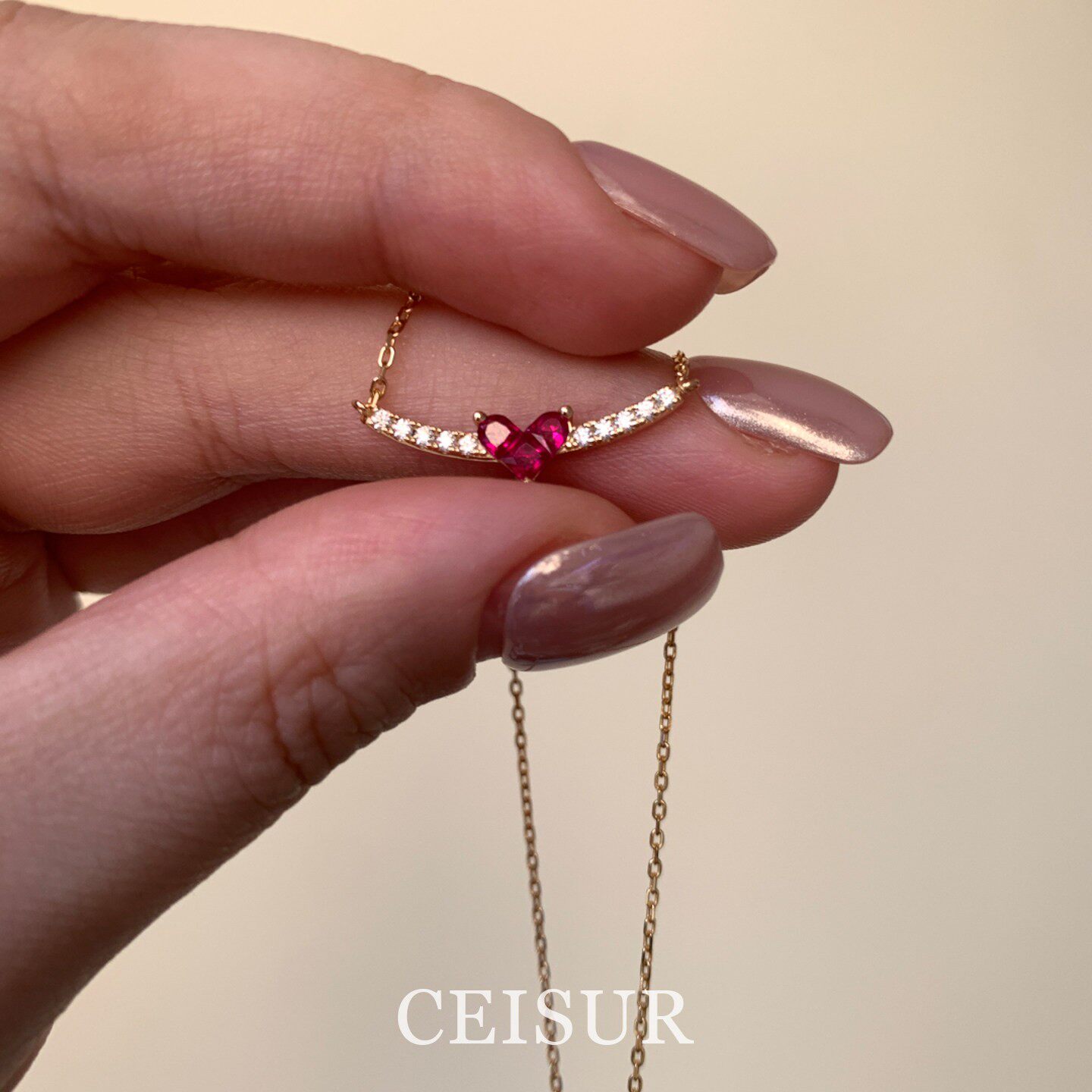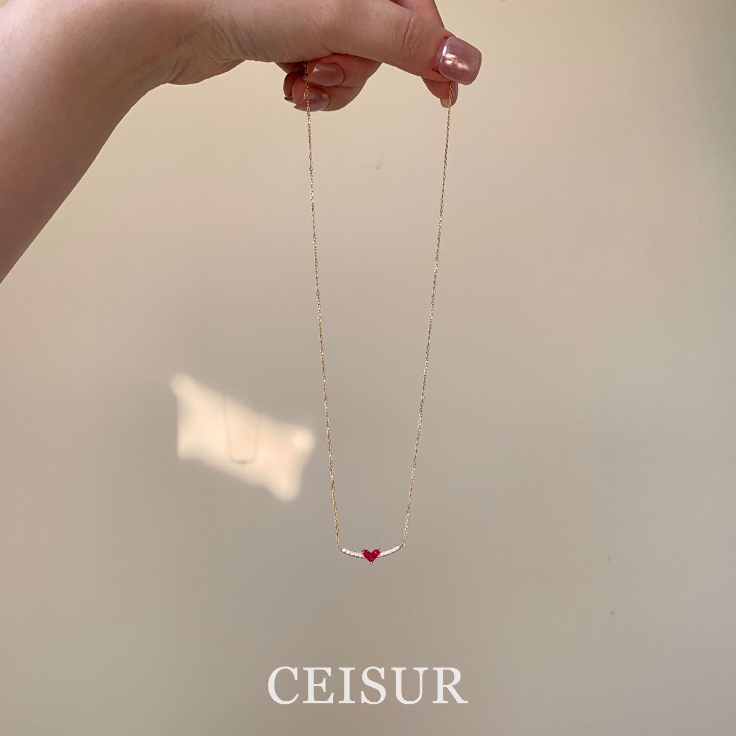 S925银温柔绯红色镶钻爱心项链女款2026新款高级感轻奢小众锁骨链