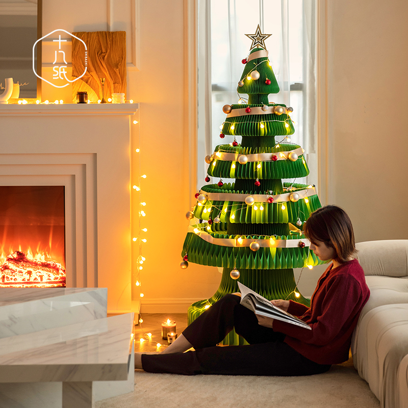 十八纸新年2025新款装饰树圣诞树网红款可折叠收纳循环圆凳送礼