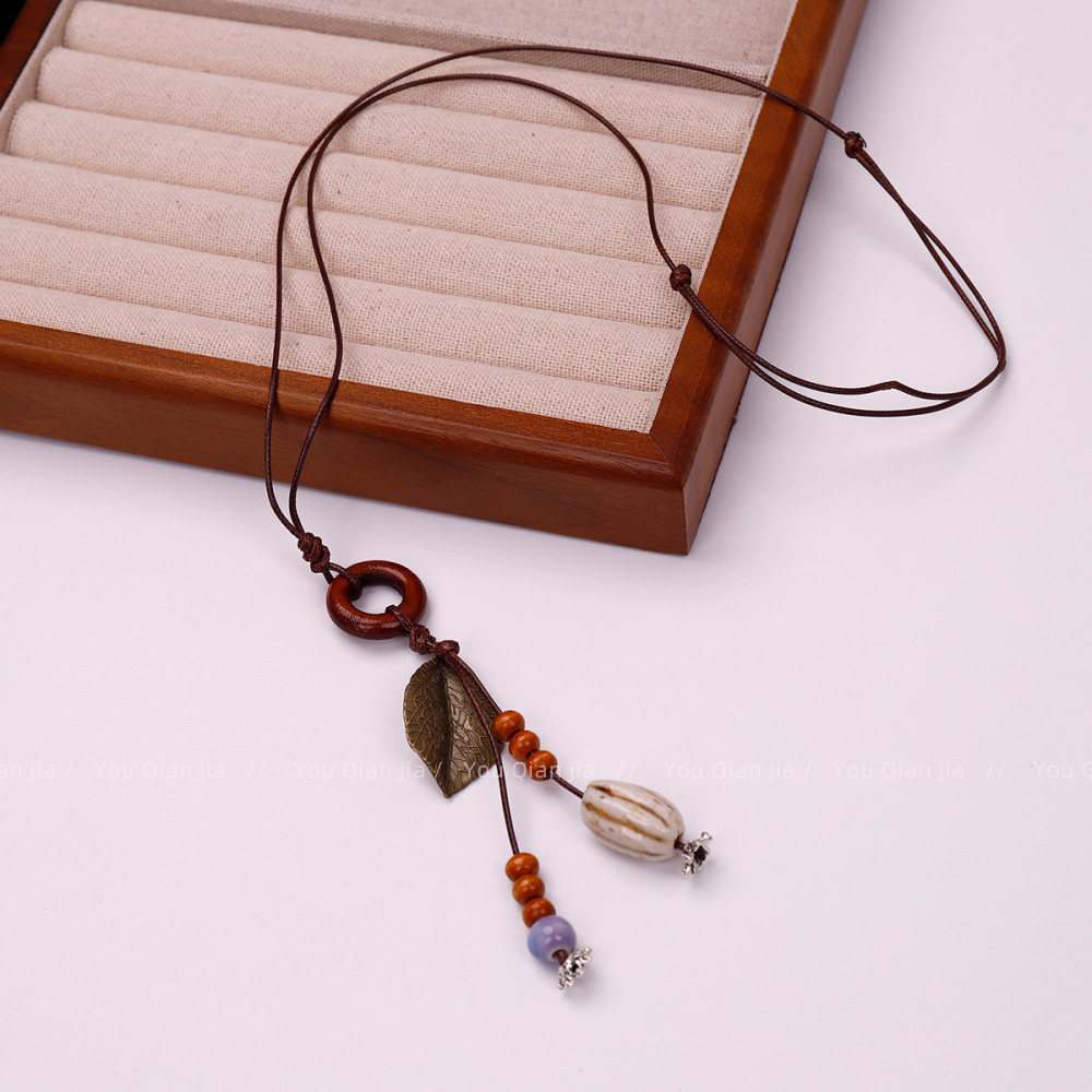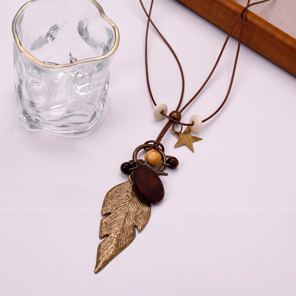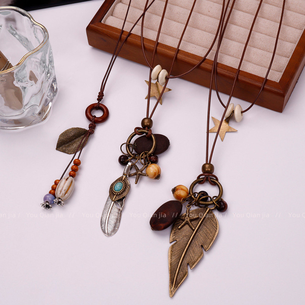 波西米亚风项链女多层叠戴叶子星星挂件配饰新中式陶瓷吊坠毛衣链