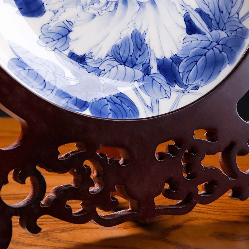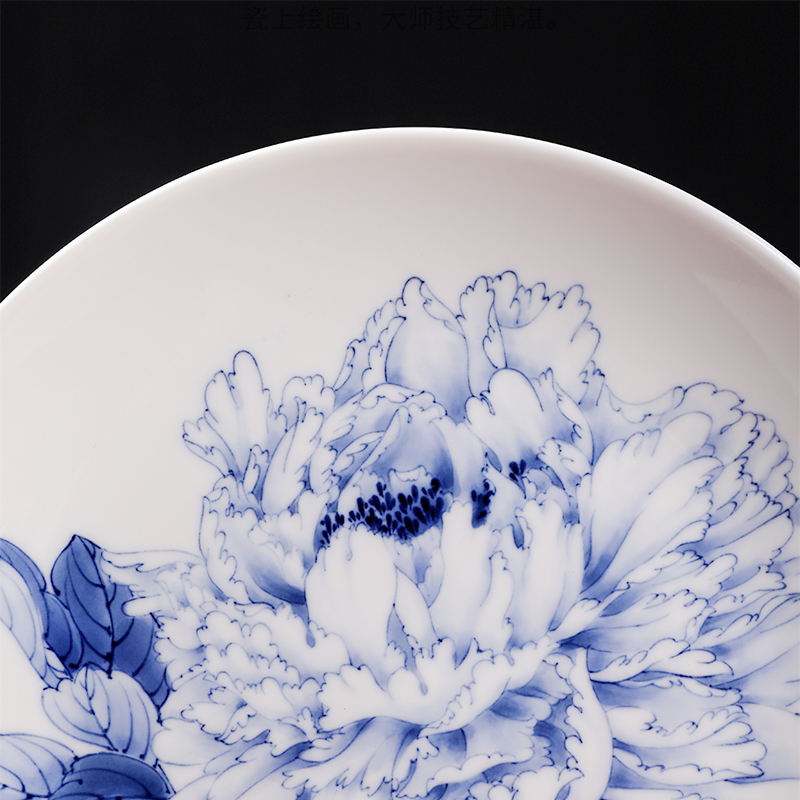 东方泥土邱玫瑰作品花开富贵陶瓷釉下青花手绘挂盘摆件家居装饰品