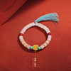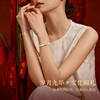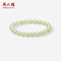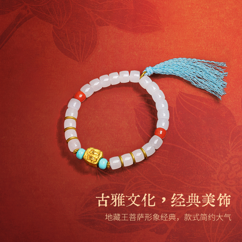 周六福黄金5D硬金和田白玉清雅佛脚印金镶玉手串九华山节日礼物