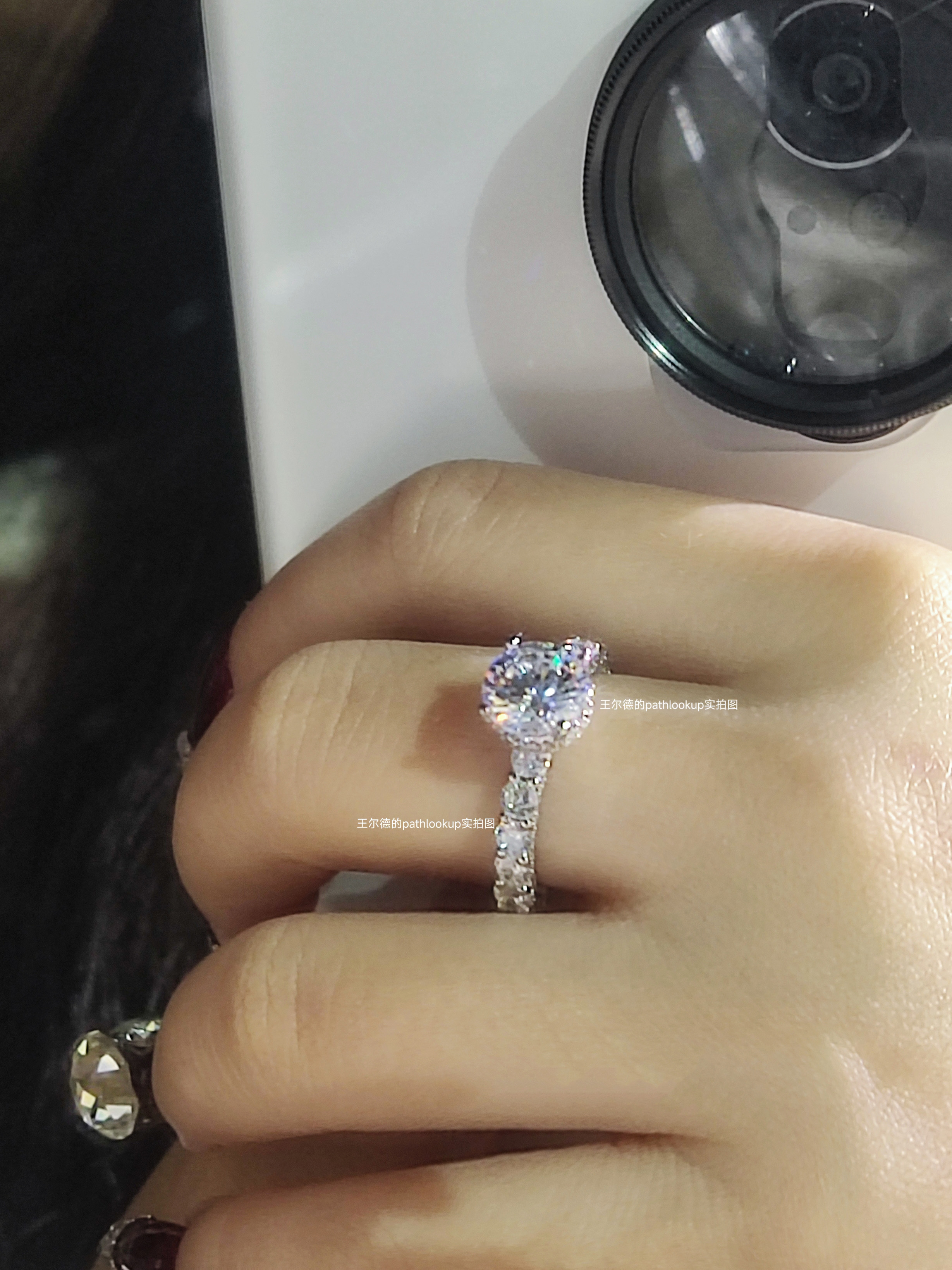18K白金四爪皇冠2ct高碳钻石戒指女轻奢复古宫廷风仿真钻戒食指戒