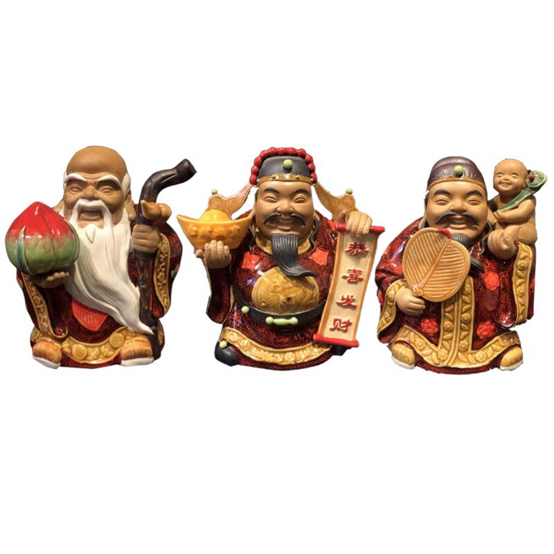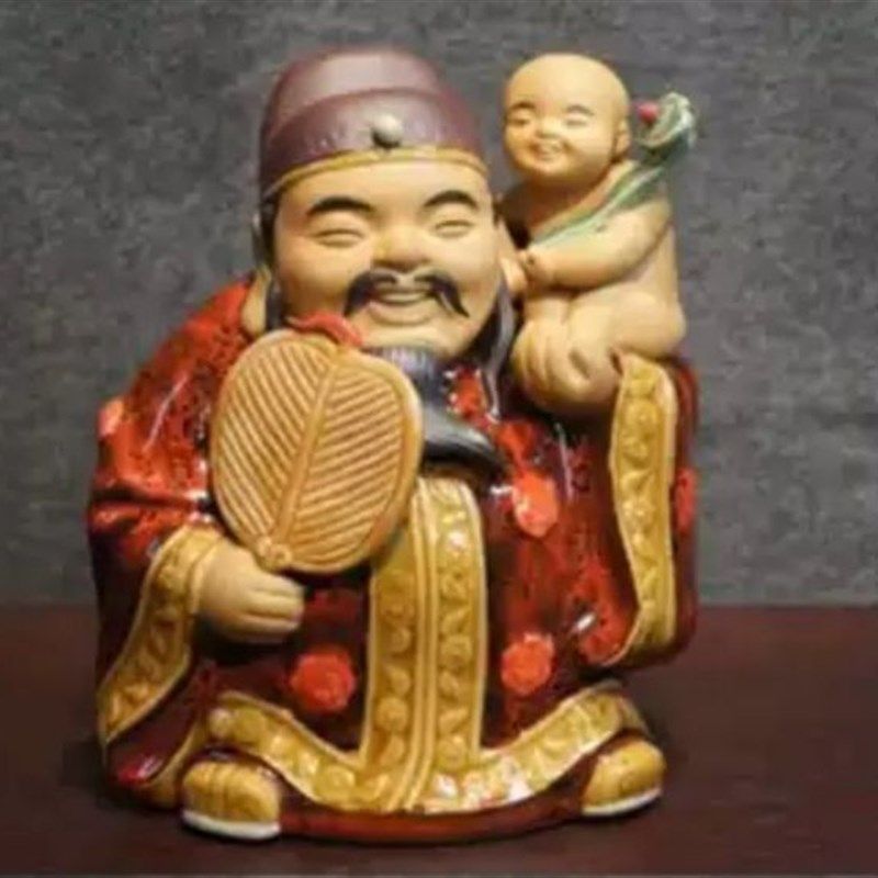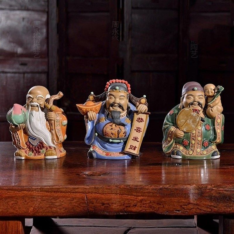 石湾公仔陶瓷福禄寿手工桌面摆件贺寿长辈喜庆乔迁新居创意礼品