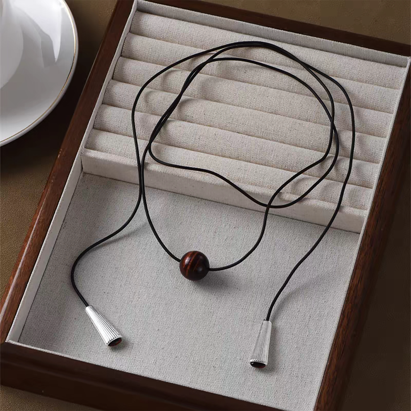 董洁同款复古虎眼石黑色编绳长项链女小众颈链2025新款气质毛衣链