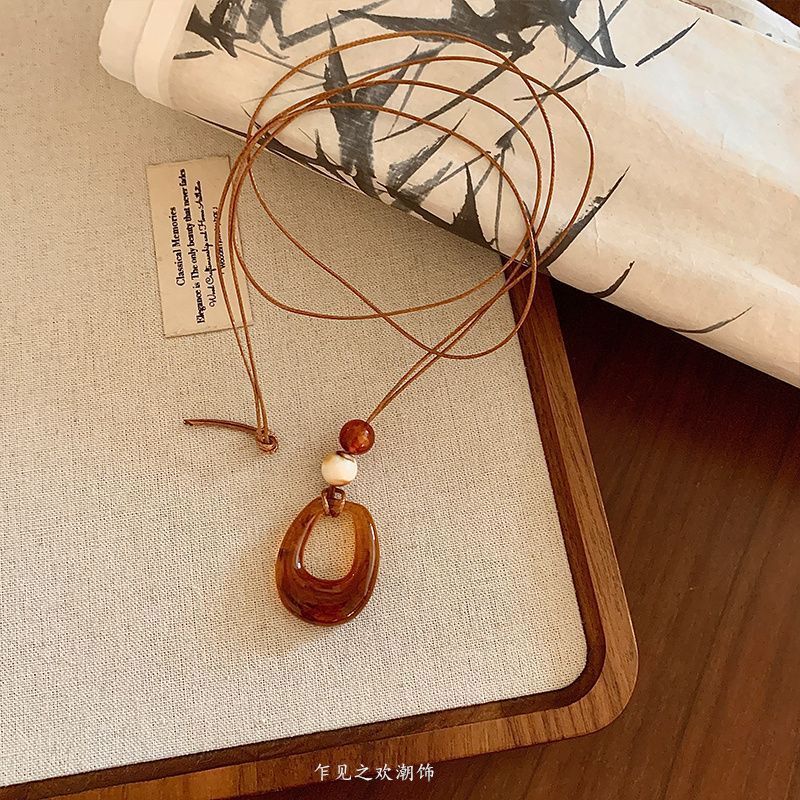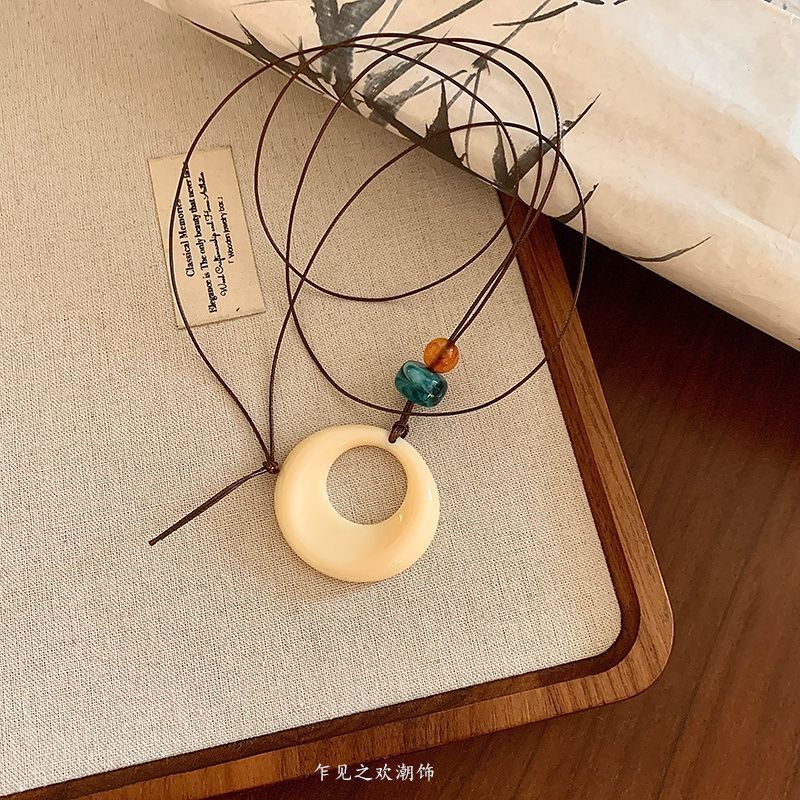 新中式圆环吊坠编绳项链女小众设计简约时尚冷淡风复古风长链配饰