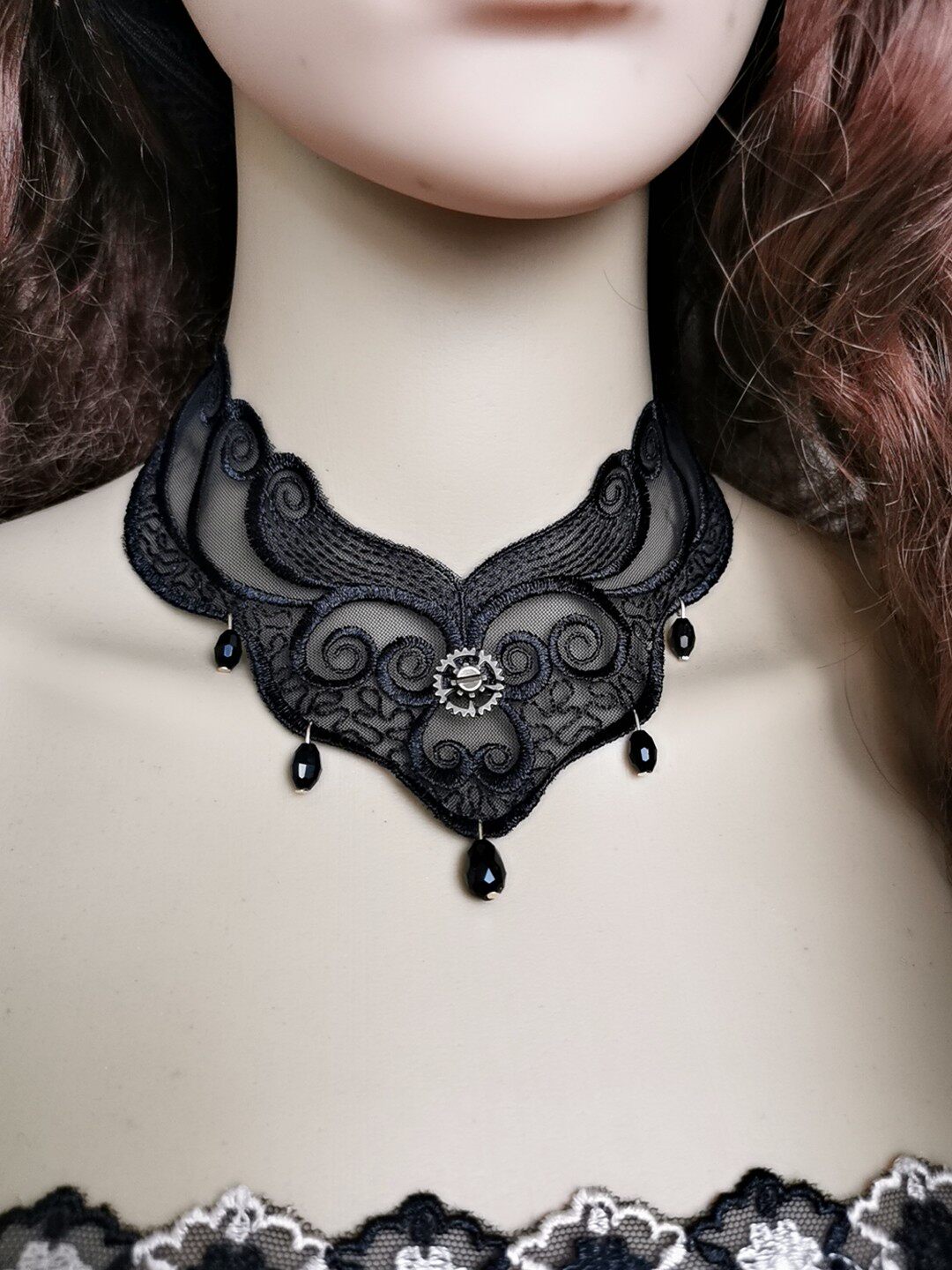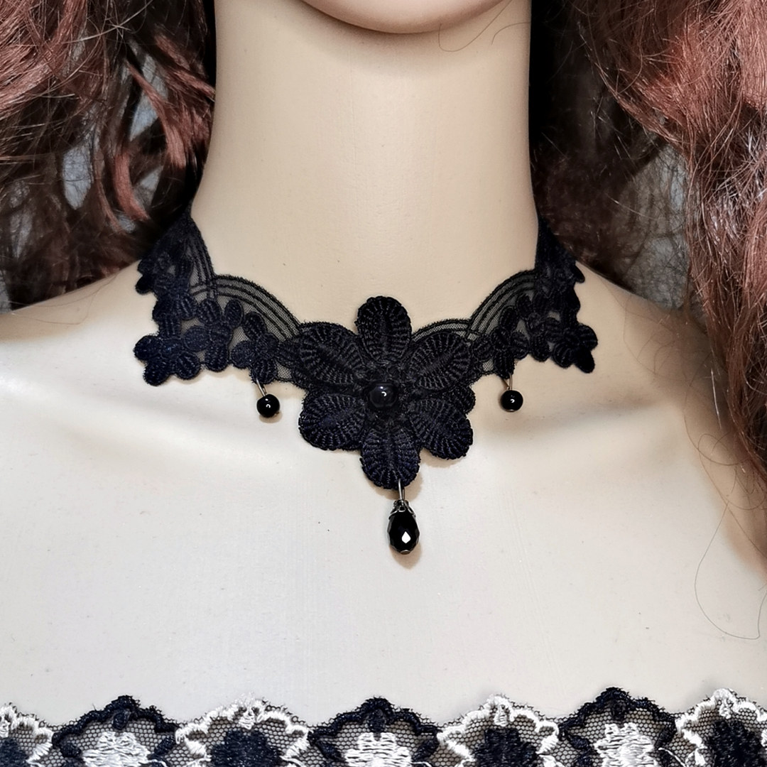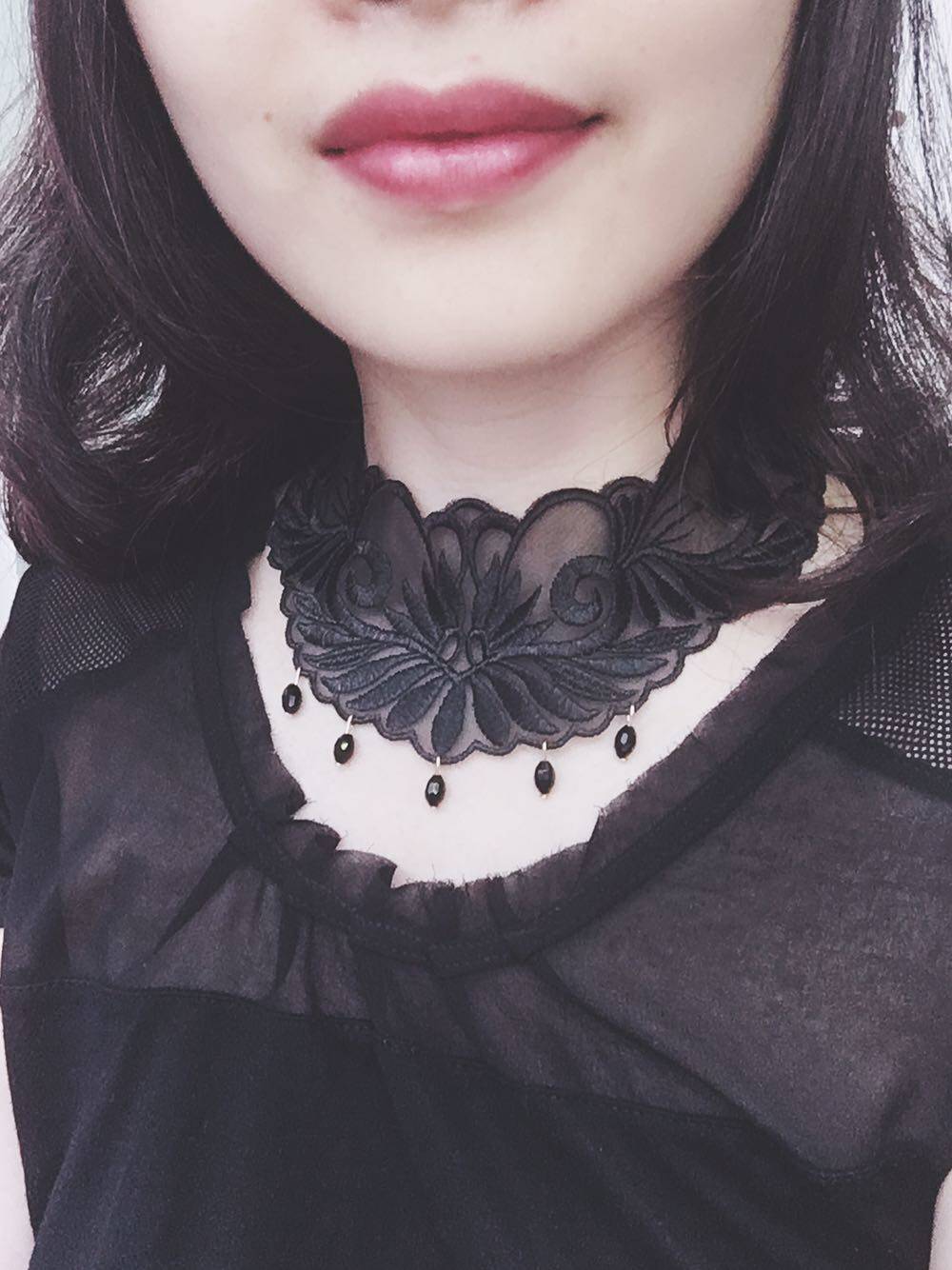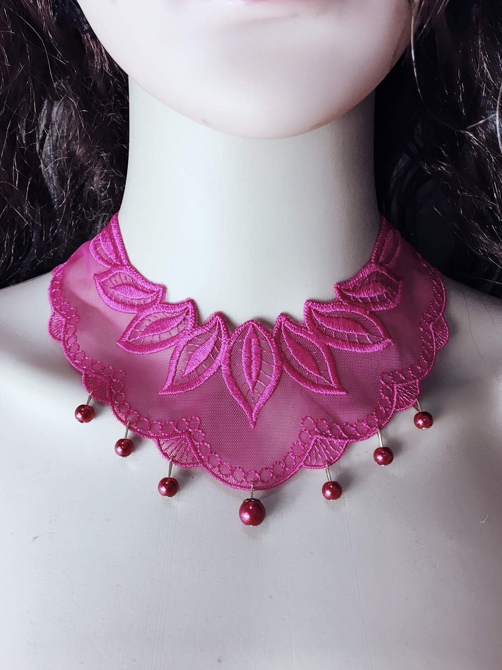 新品欧美网红蕾丝加宽锁骨项链宴会礼服颈饰黑色玫红色项饰
