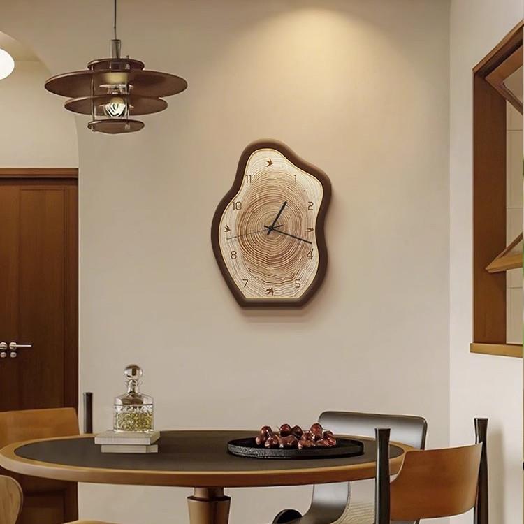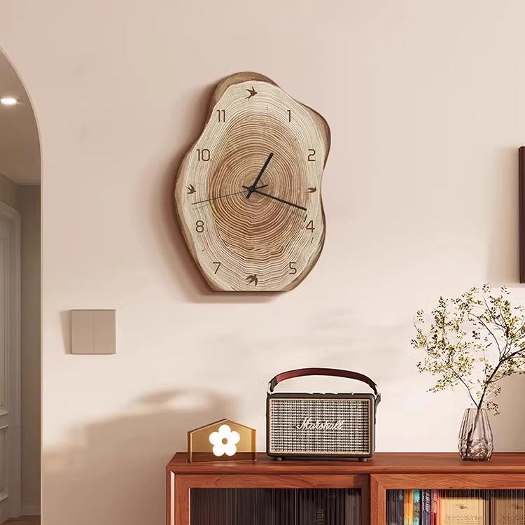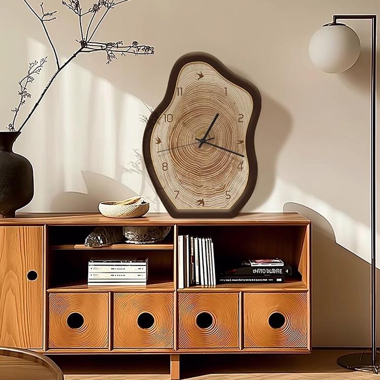中古原木风桌面时钟摆台式客厅挂钟静音原创小众挂墙复古钟表摆件