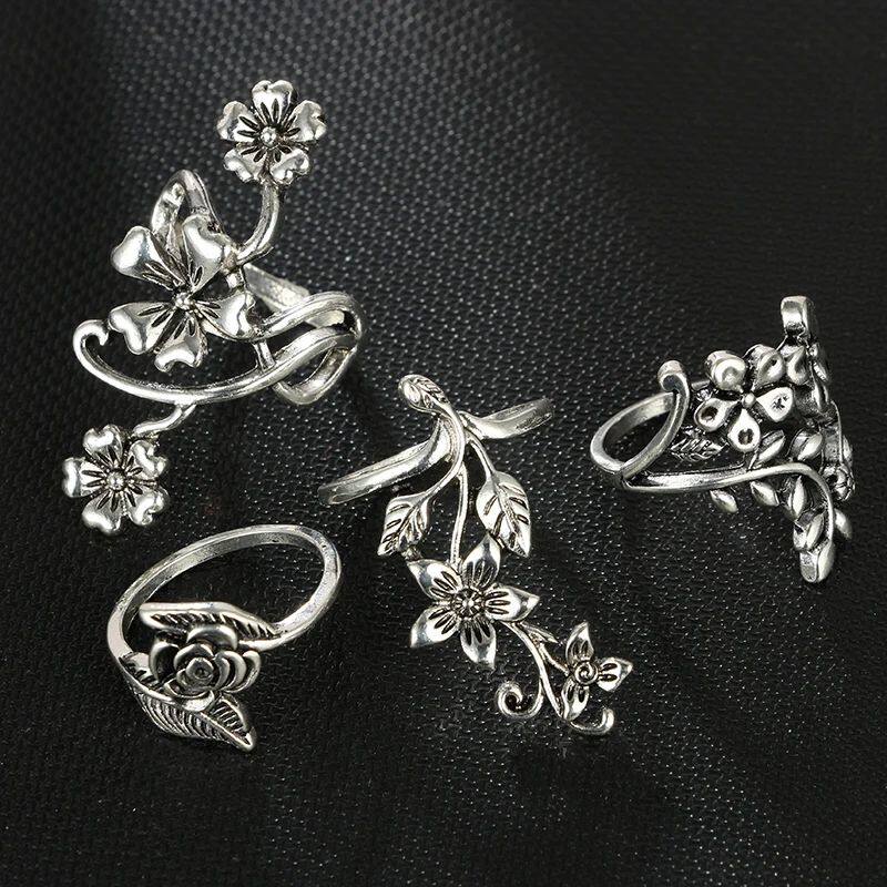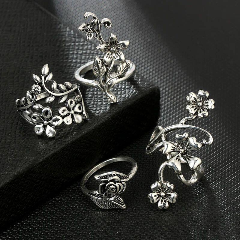 Vintage Bohemia Ring Set Rose Flower Rings for Women Charm