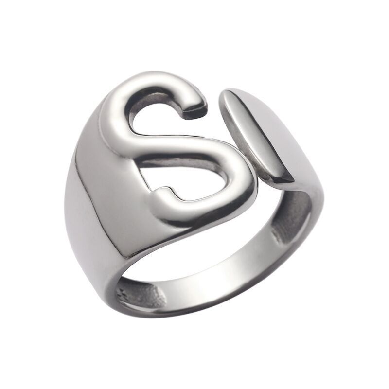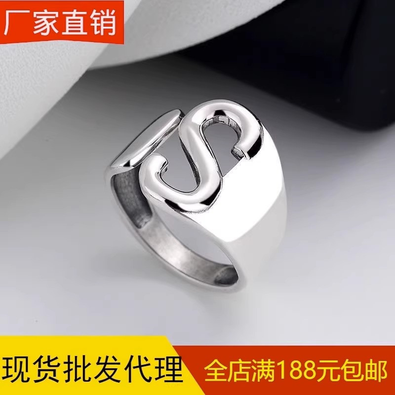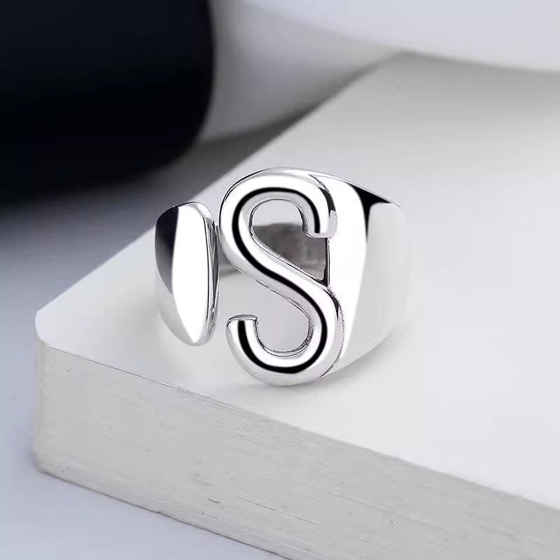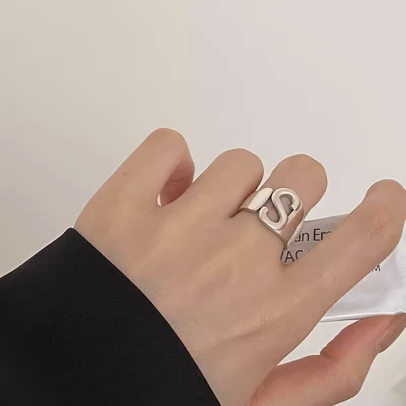 01325欧美风光面S字母戒指开口戒指设计感ins时尚潮人女款手饰品