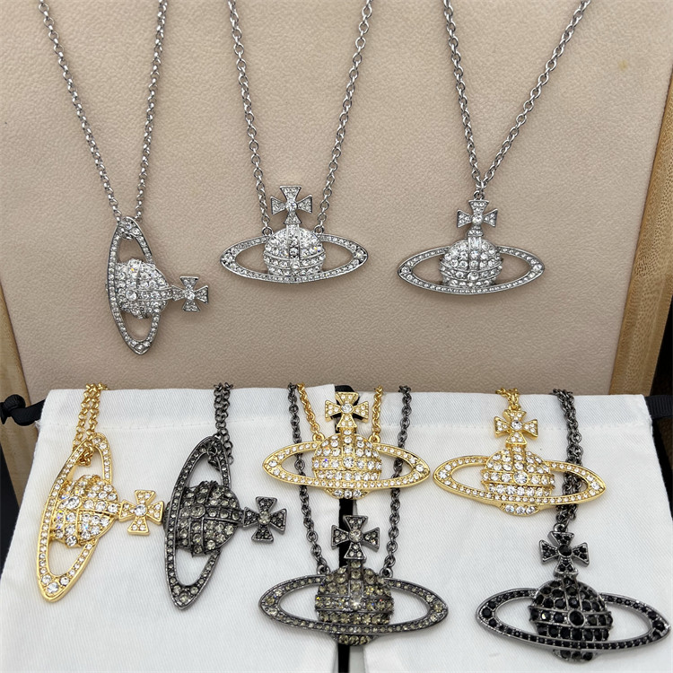 时尚大方 大号满钻土星链条项链-B8351网红INS明星