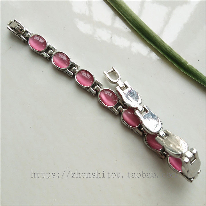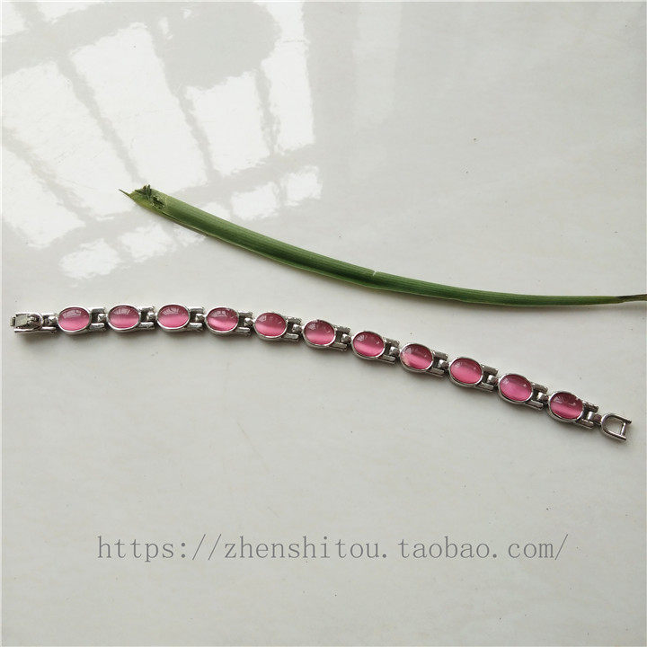 粉红色猫眼石手链椭圆形蛋面猫咪眼睛银饰手串送母亲老婆女友礼物