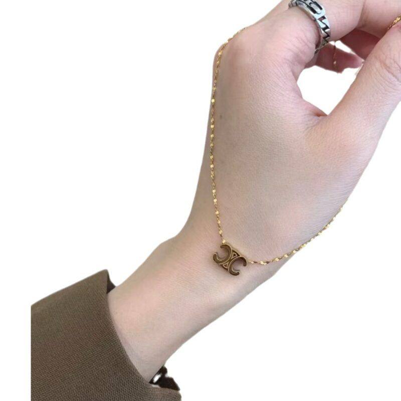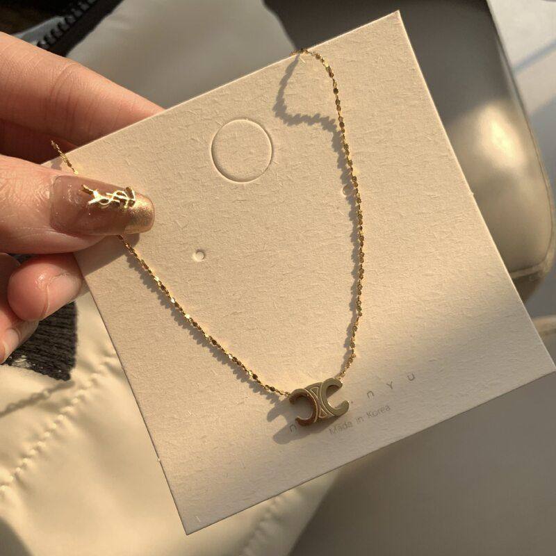 洗澡不用摘电镀凯旋门项链女轻奢风小红书同款气质钛钢锁骨链