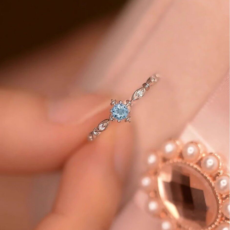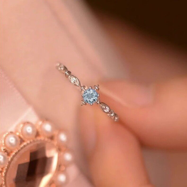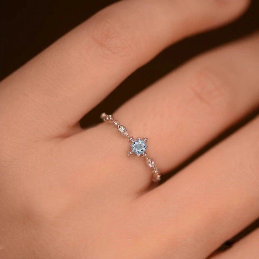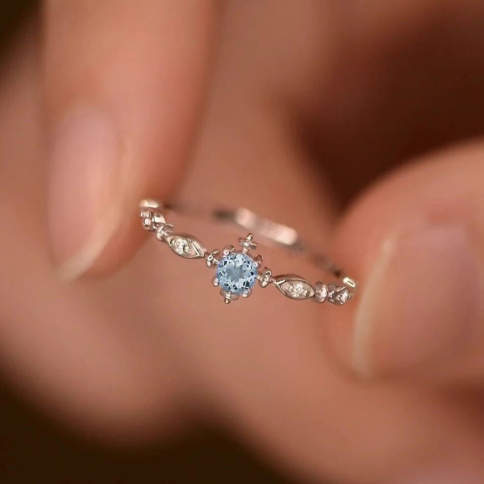 蓝色雪花戒指女轻奢ins简约小众设计精致托帕石食指开口调节指环