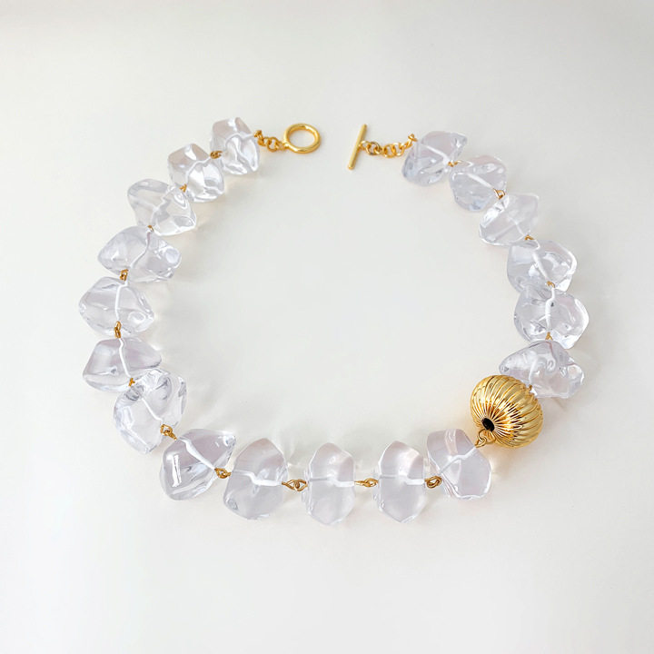 中古风小众vintage蓝色高透明彩色不规则树脂串珠项链毛衣链