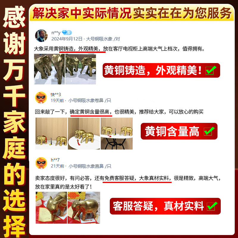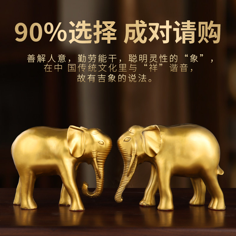 铜象吸水象客厅纯黄铜大象摆件一对家居酒柜玄关办公室装饰工艺品