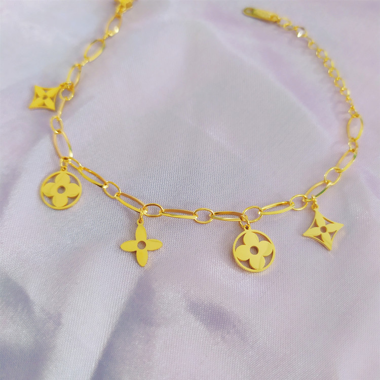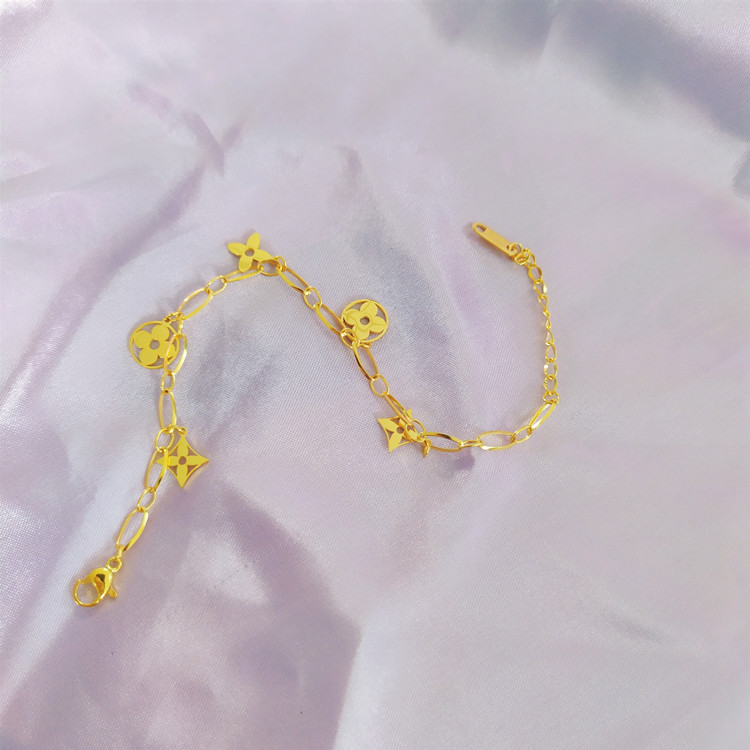 小众设计高级感18K金色老花手链女超仙防过敏不掉色小花吊坠手链