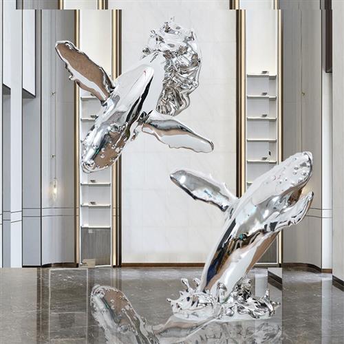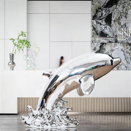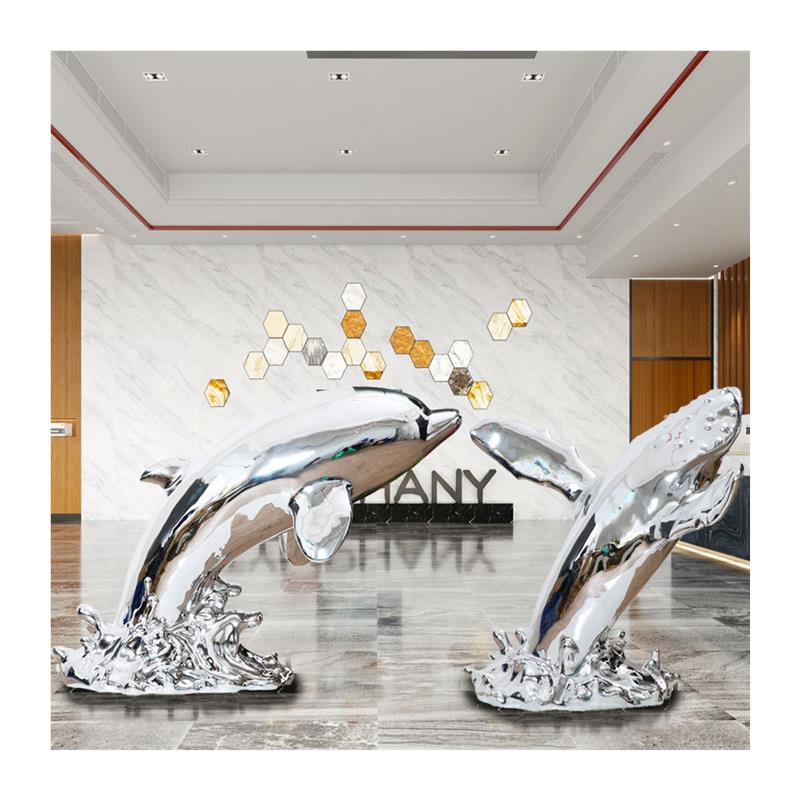 酒店大堂落地海豚雕塑艺术品售楼处别墅展厅玻璃钢电镀软装置摆件
