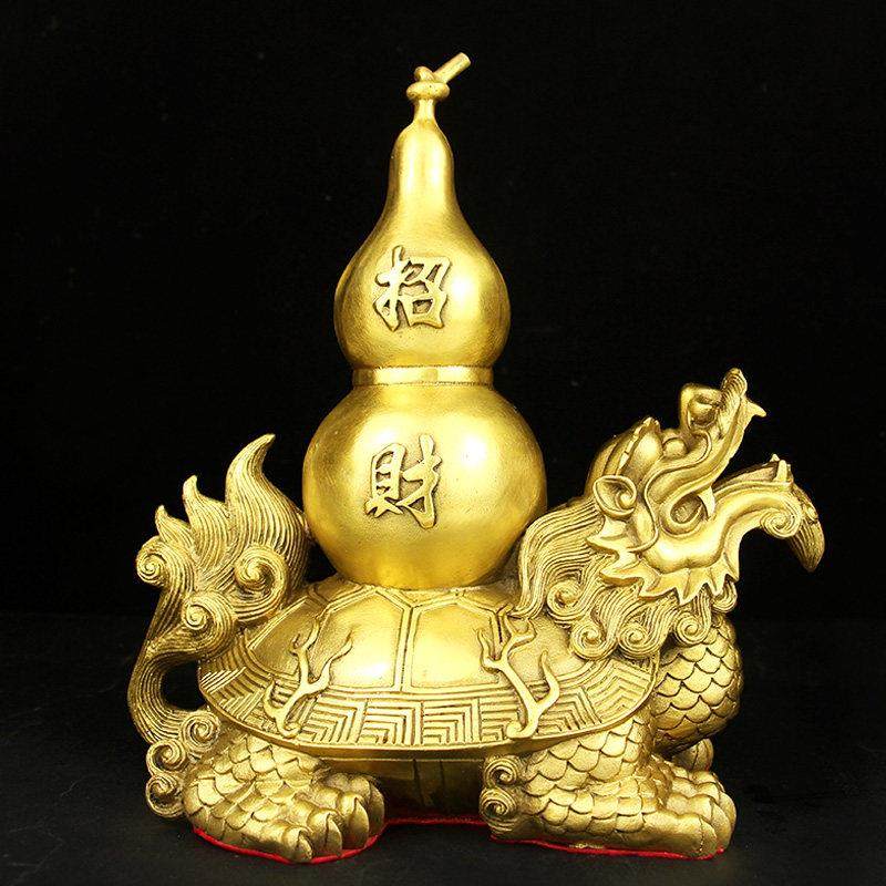 黄铜龙龟摆件龙龟背葫芦家居装饰品办公室桌面客厅玄关阳台摆设纯
